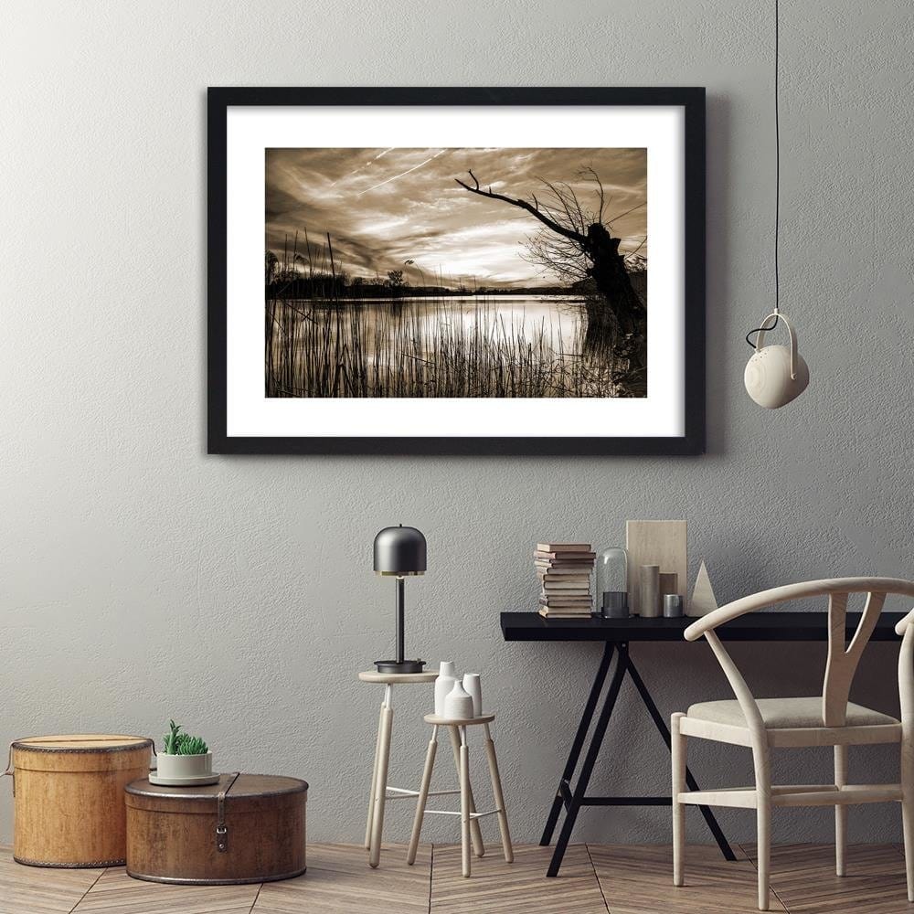 Glezna melnā rāmī - Dry Tree On The Lake 1