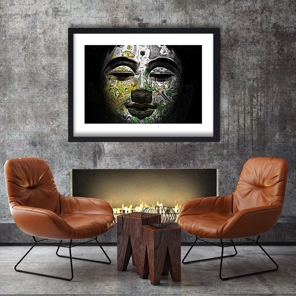 Glezna melnā rāmī - Face Of Buddha In Patterns