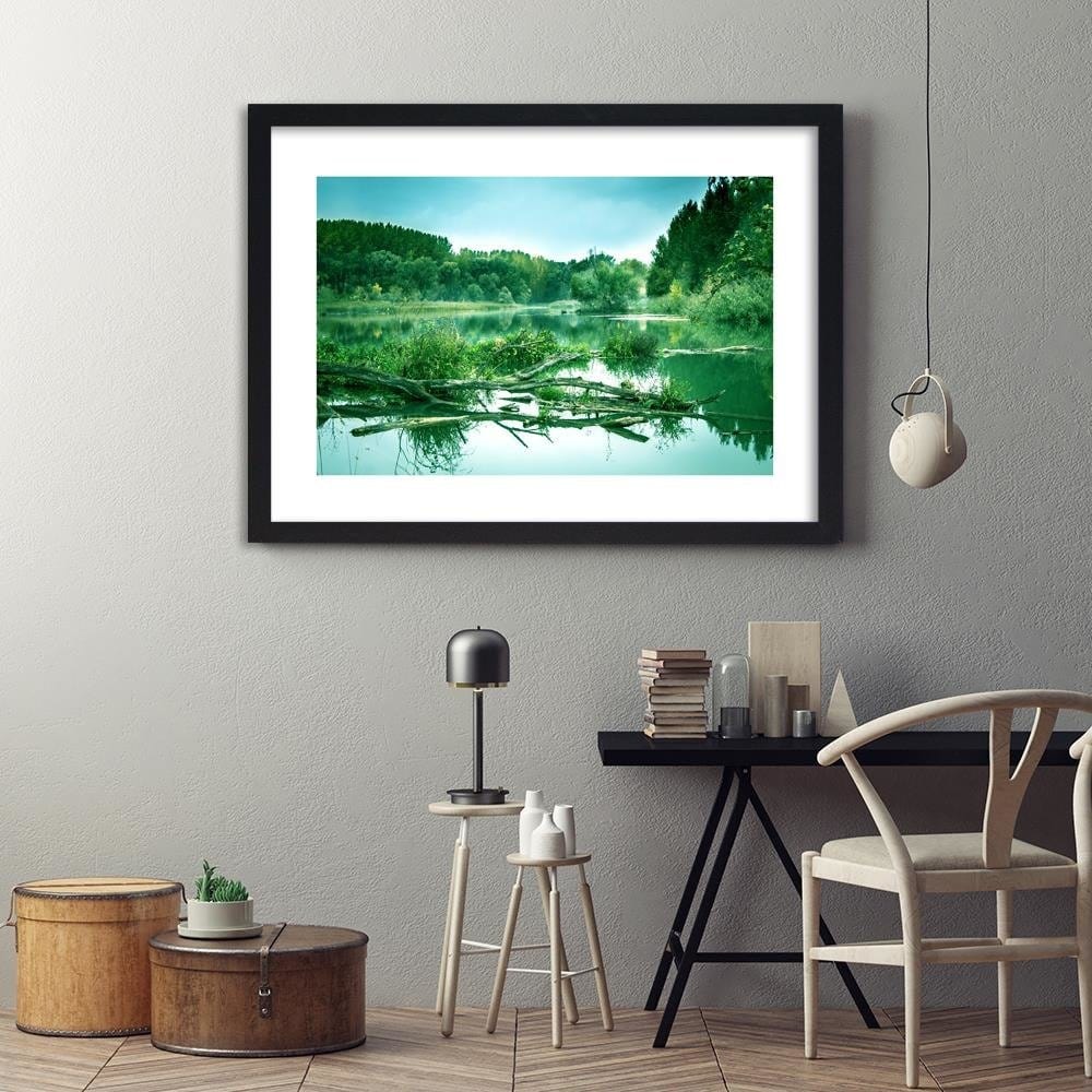 Glezna melnā rāmī - Fallen Tree In The Lake 4