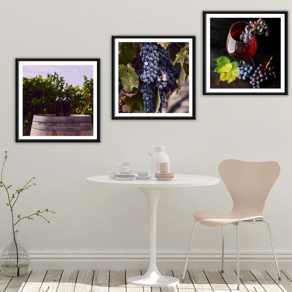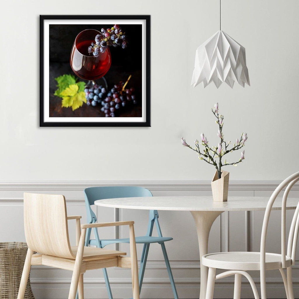 Glezna melnā rāmī - Glass Of Wine And Grapes