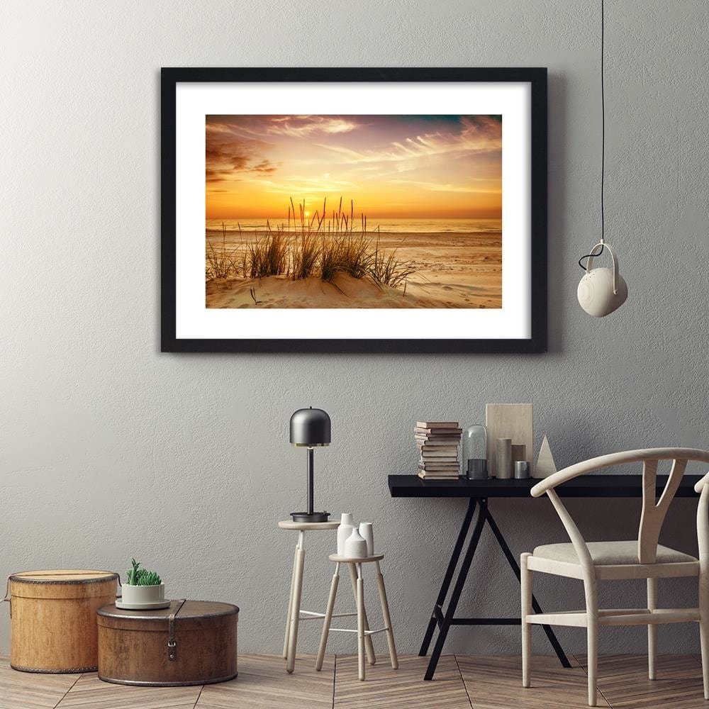 Glezna melnā rāmī - Grass On The Beach 3