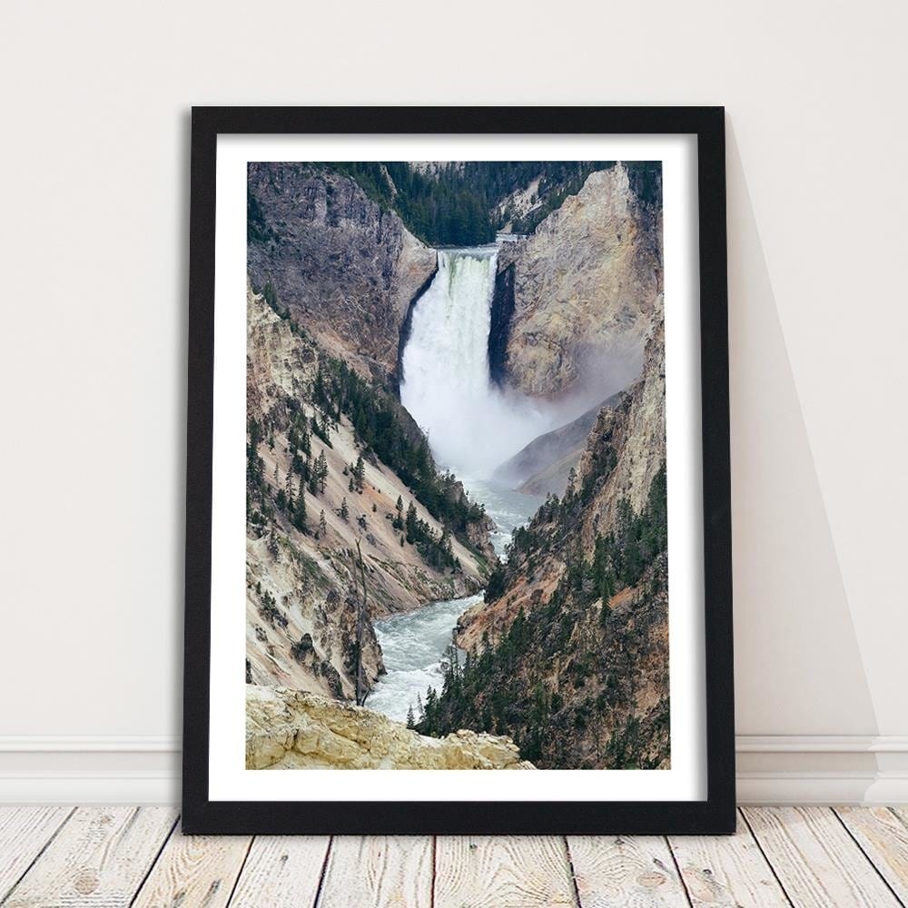 Glezna melnā rāmī - Great Waterfall In The Mountains