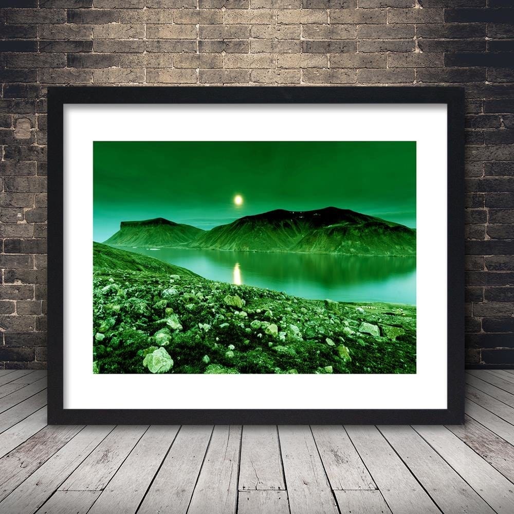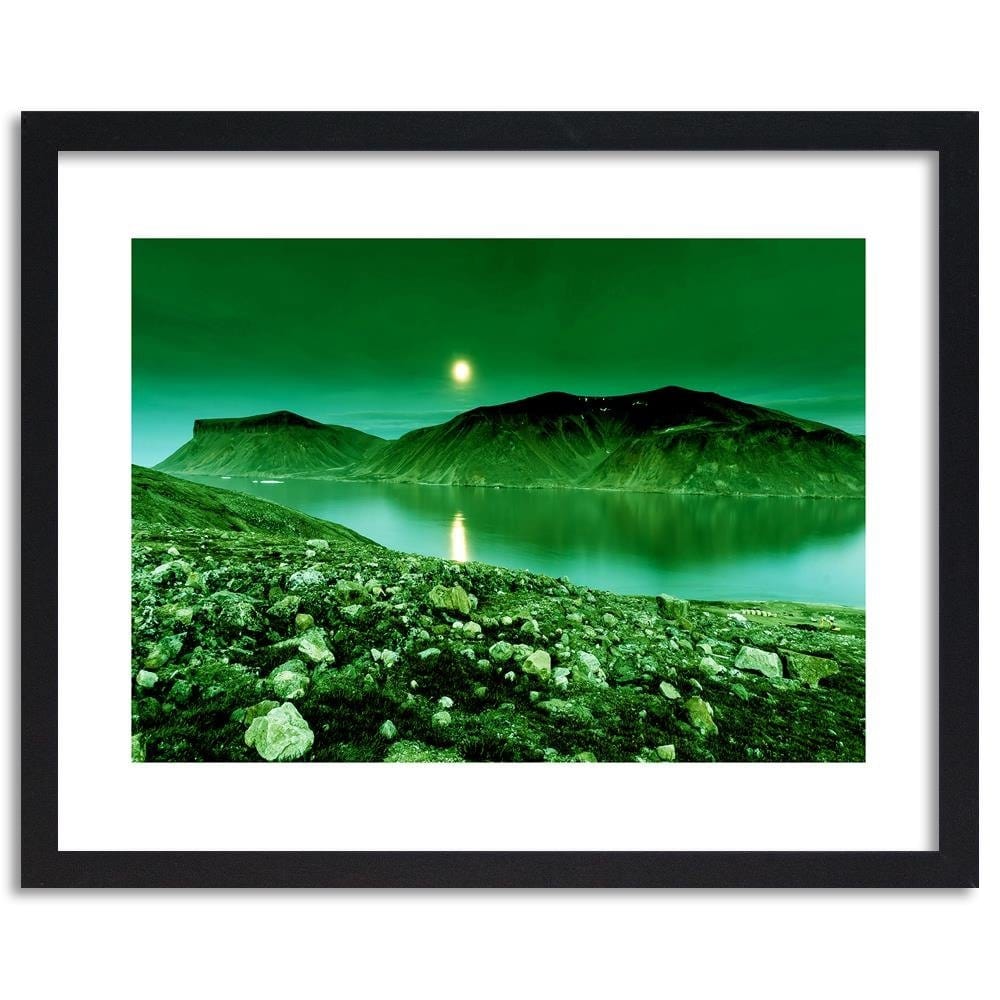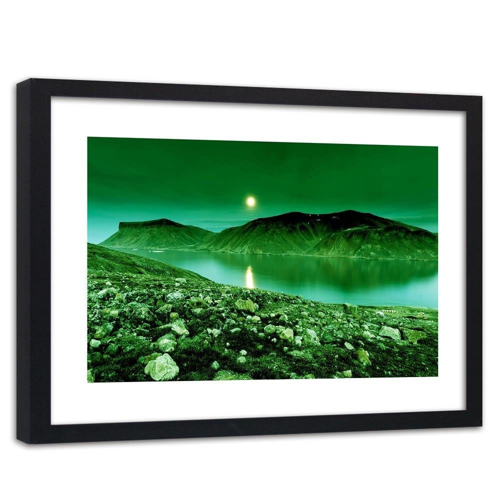 Glezna melnā rāmī - Green Mountain Landscape