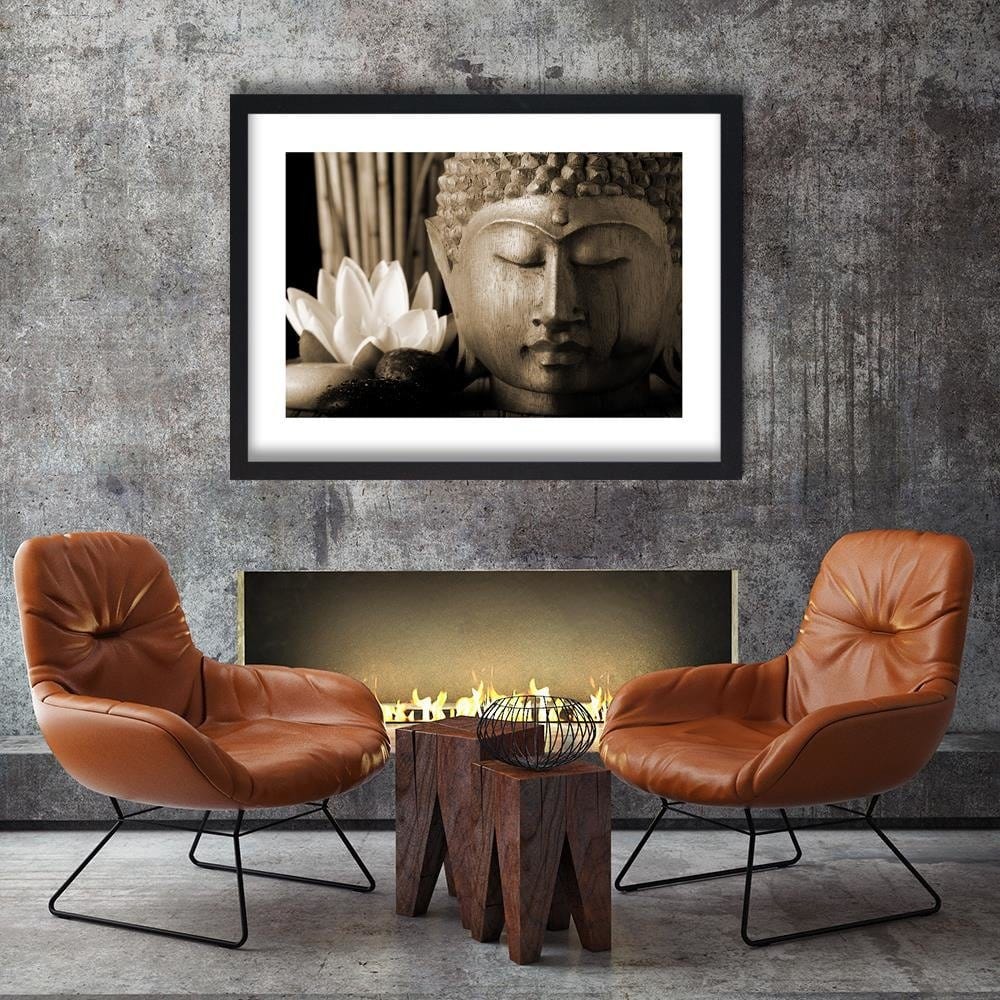Glezna melnā rāmī - Head Of Buddha With Lily
