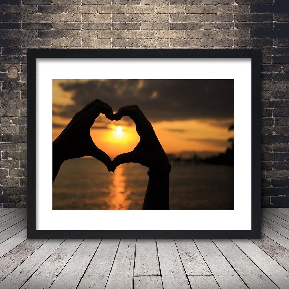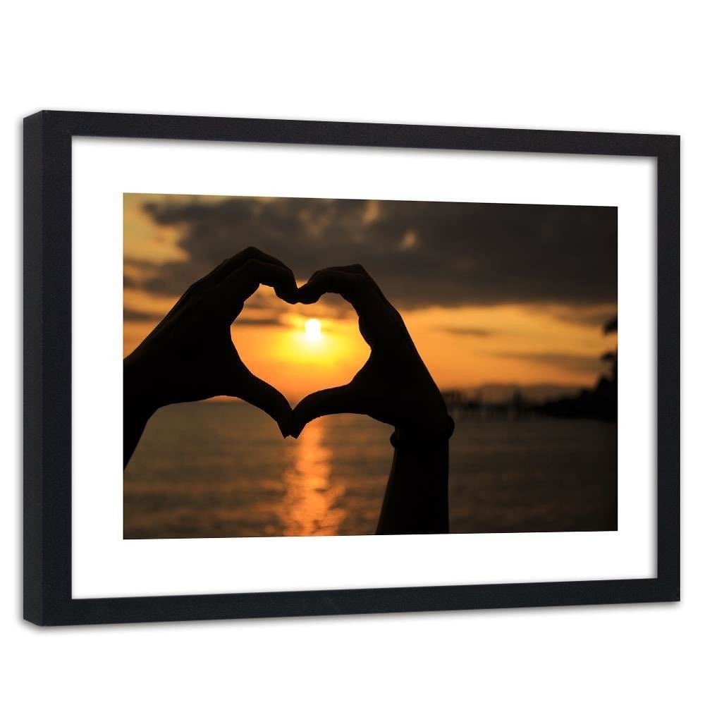 Glezna melnā rāmī - Heart Symbol With Her Hand
