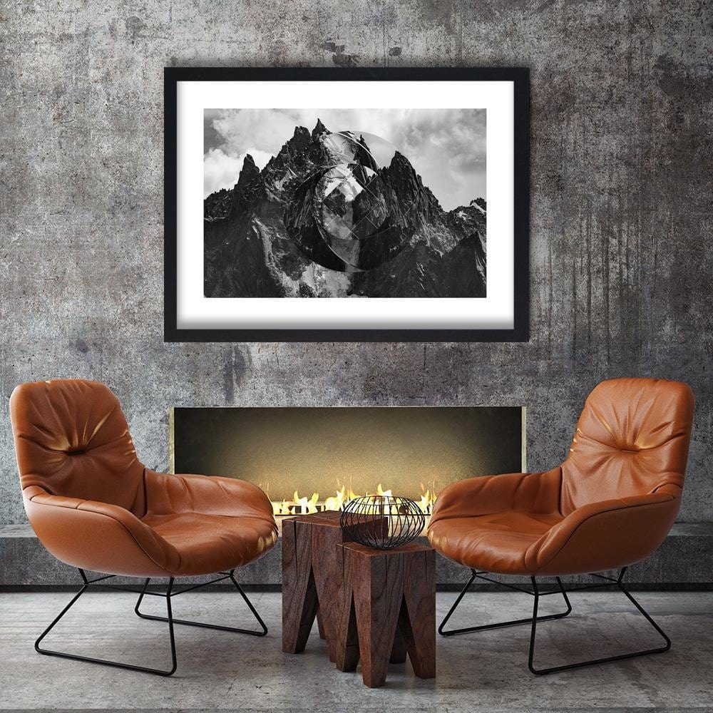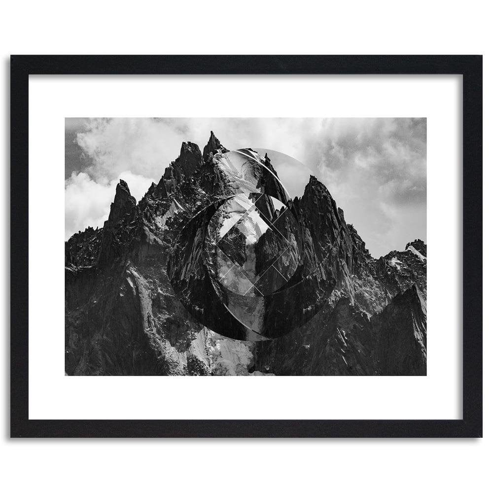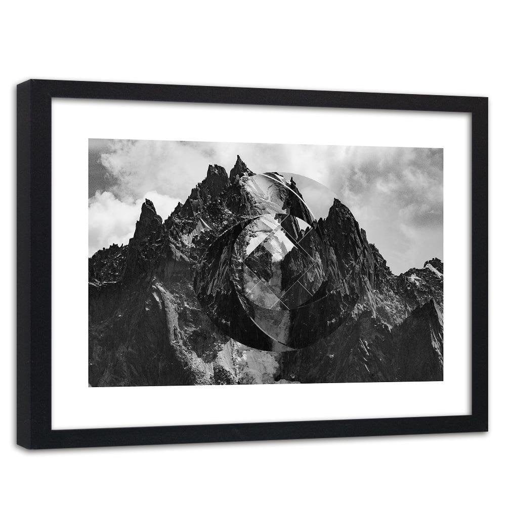 Glezna melnā rāmī - High Mountains With Geometric Figure 1
