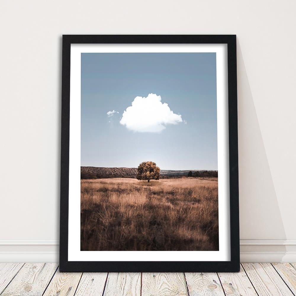 Glezna melnā rāmī - Isolated Tree And Clouds