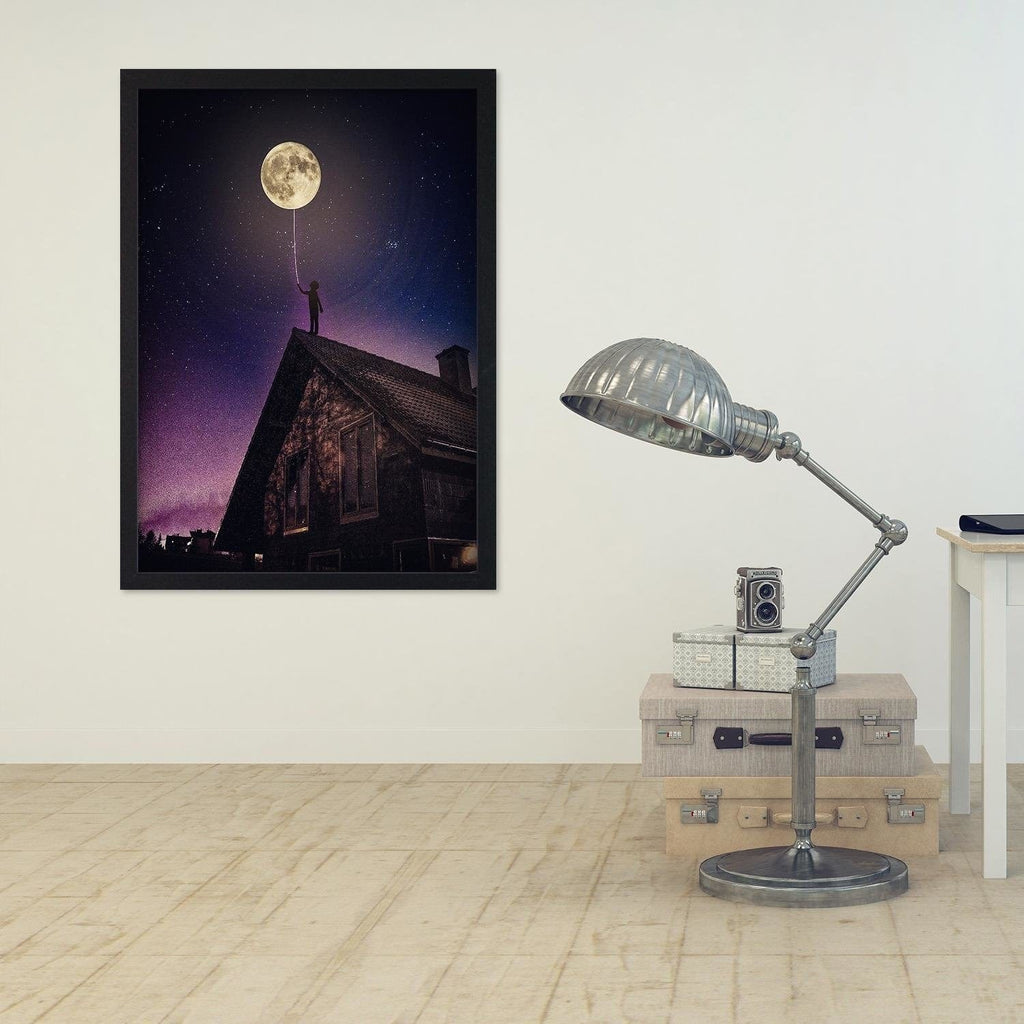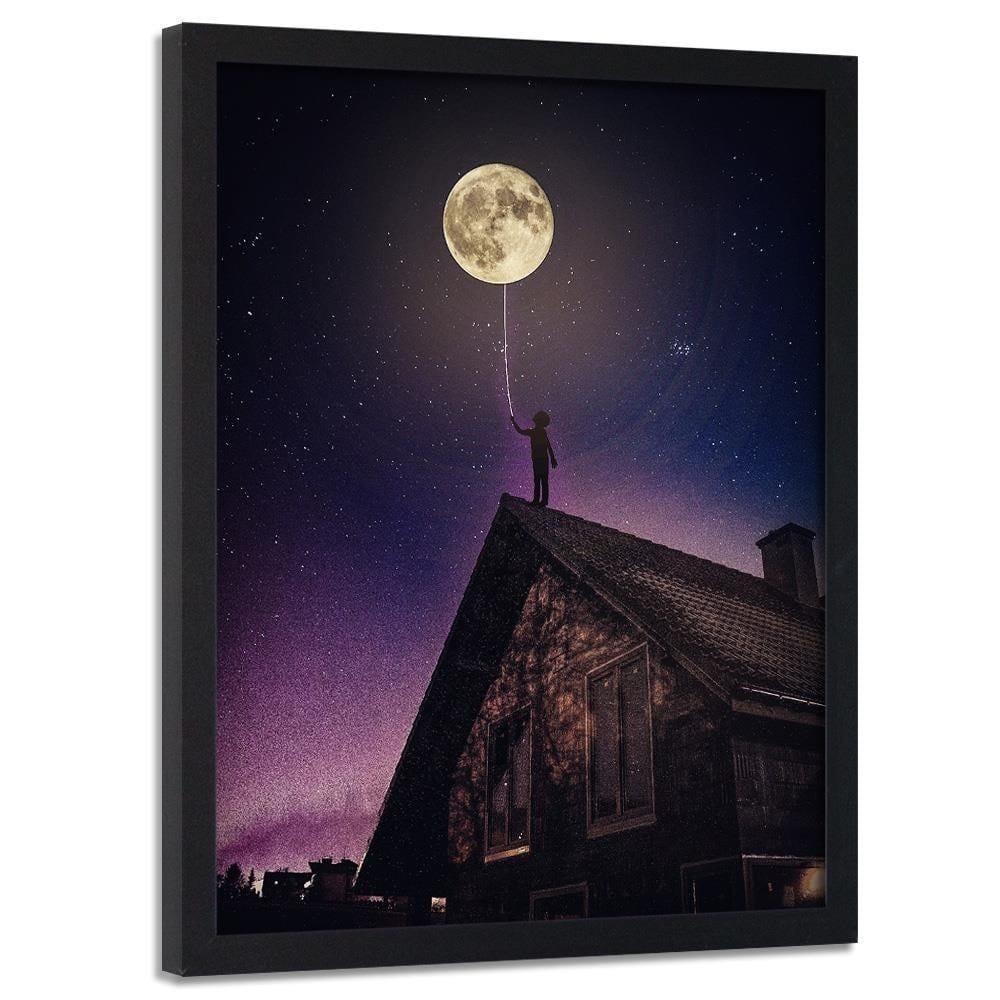 Glezna melnā rāmī - Moon As Balloon
