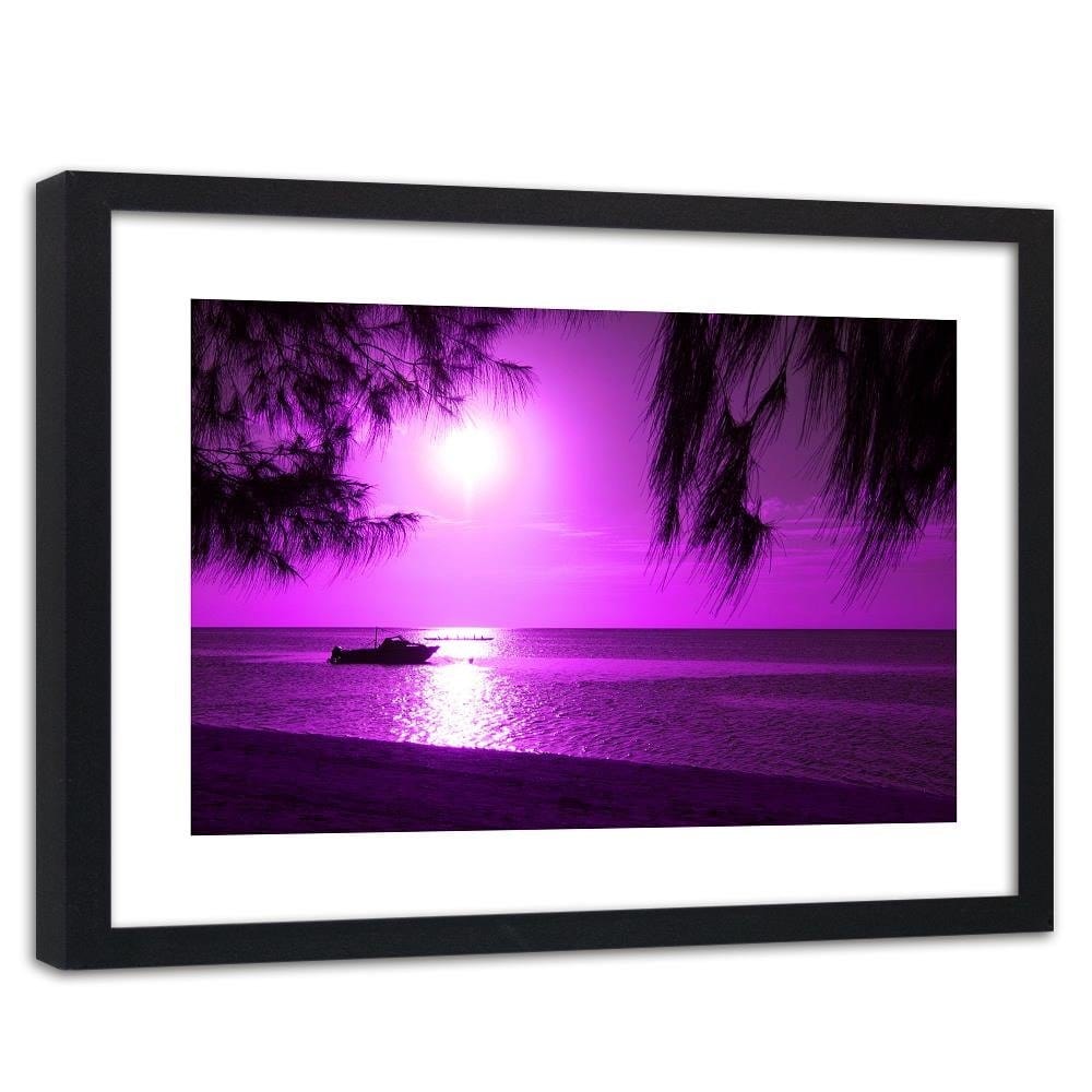 Glezna melnā rāmī - Motor Boat On The Sea Shore 3