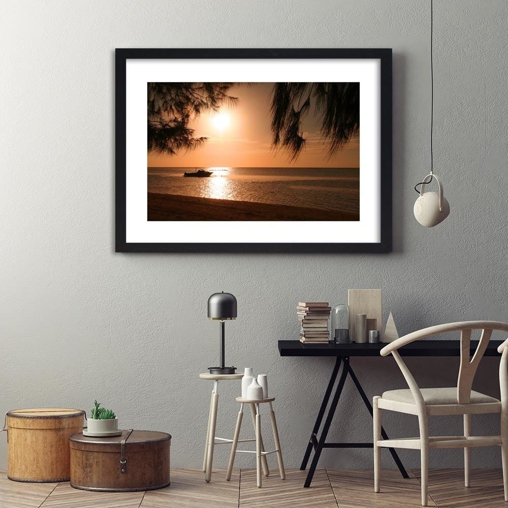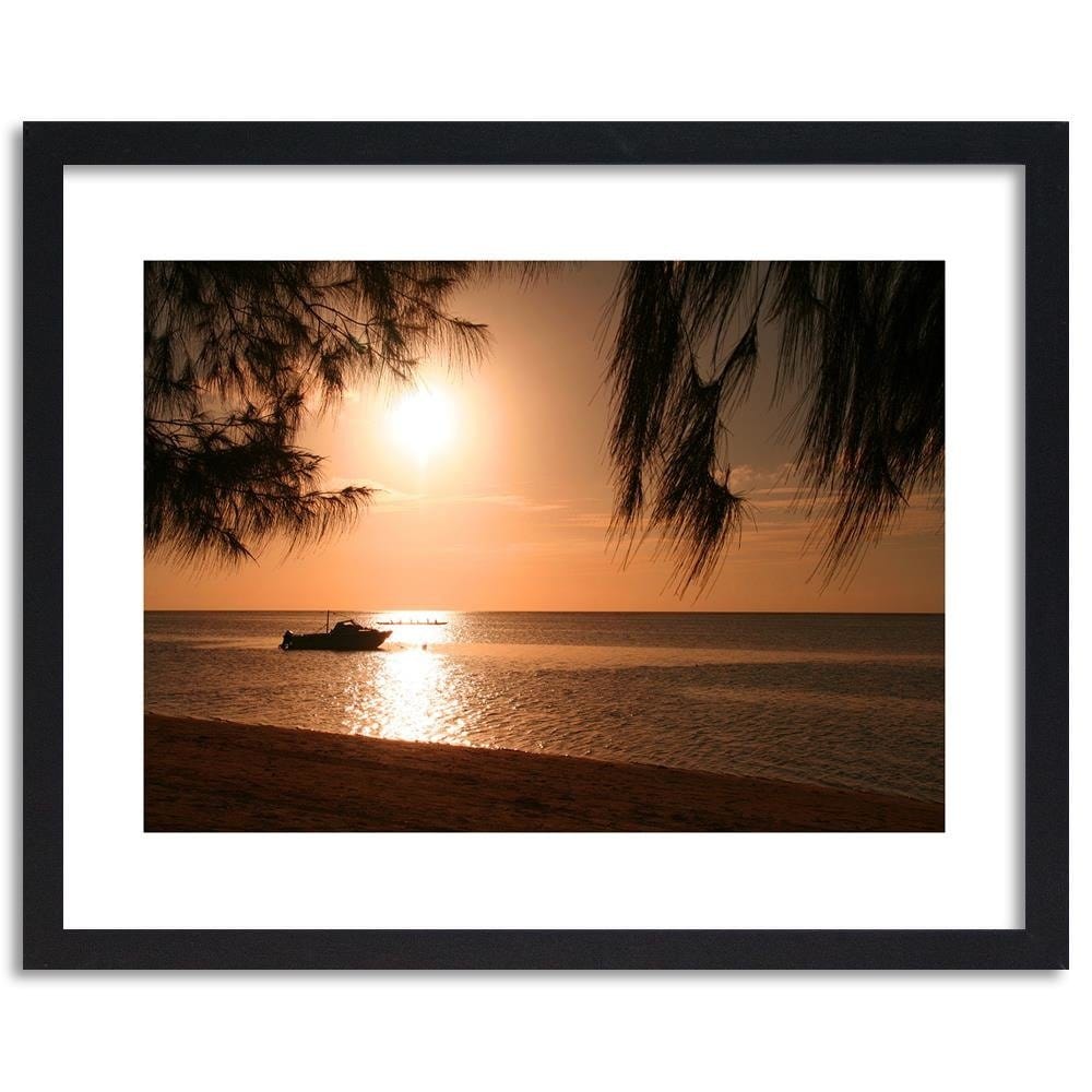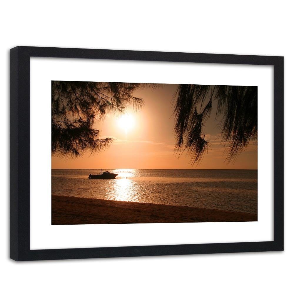 Glezna melnā rāmī - Motor Boat On The Seashore 4