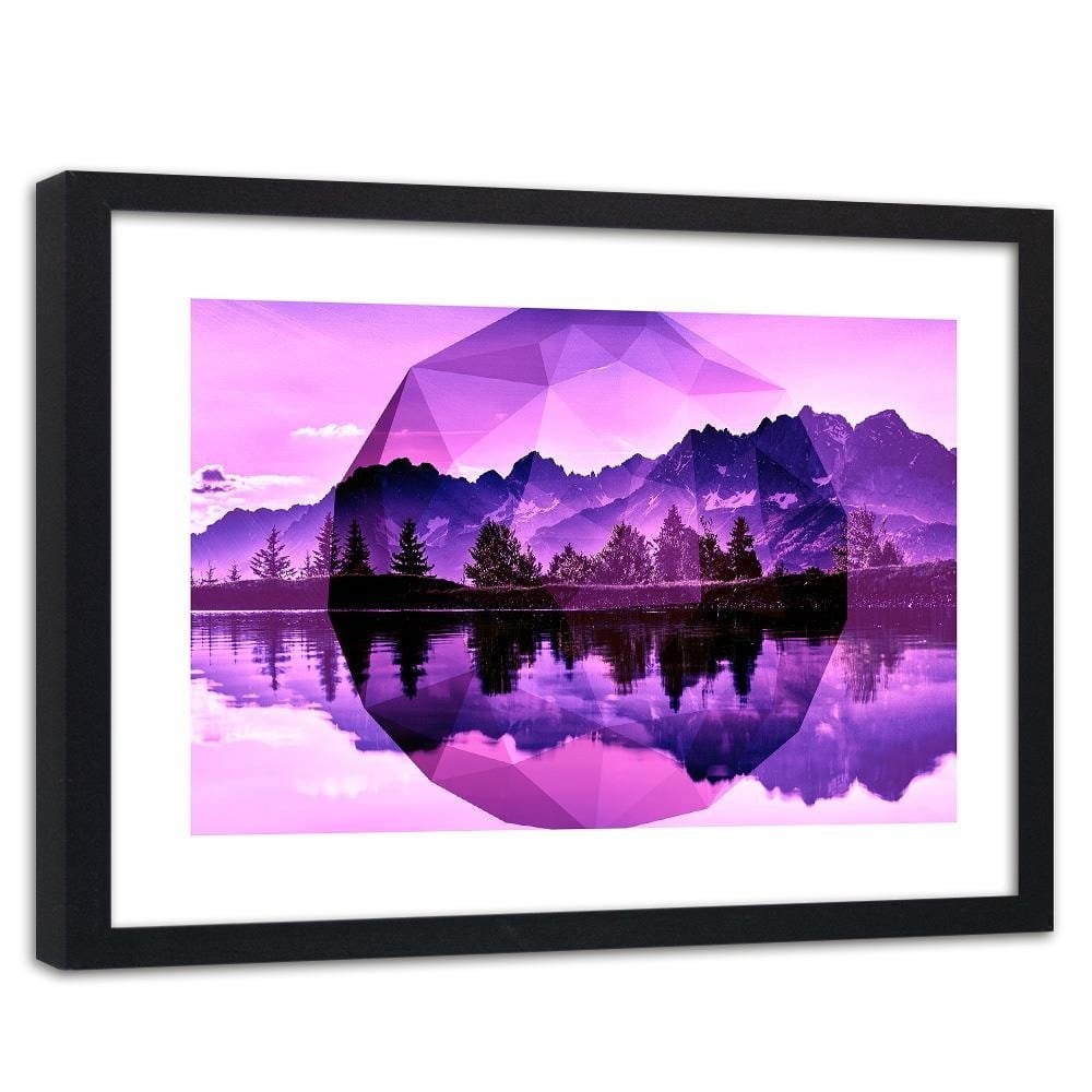 Glezna melnā rāmī - Mountain Lake And Geometry 3