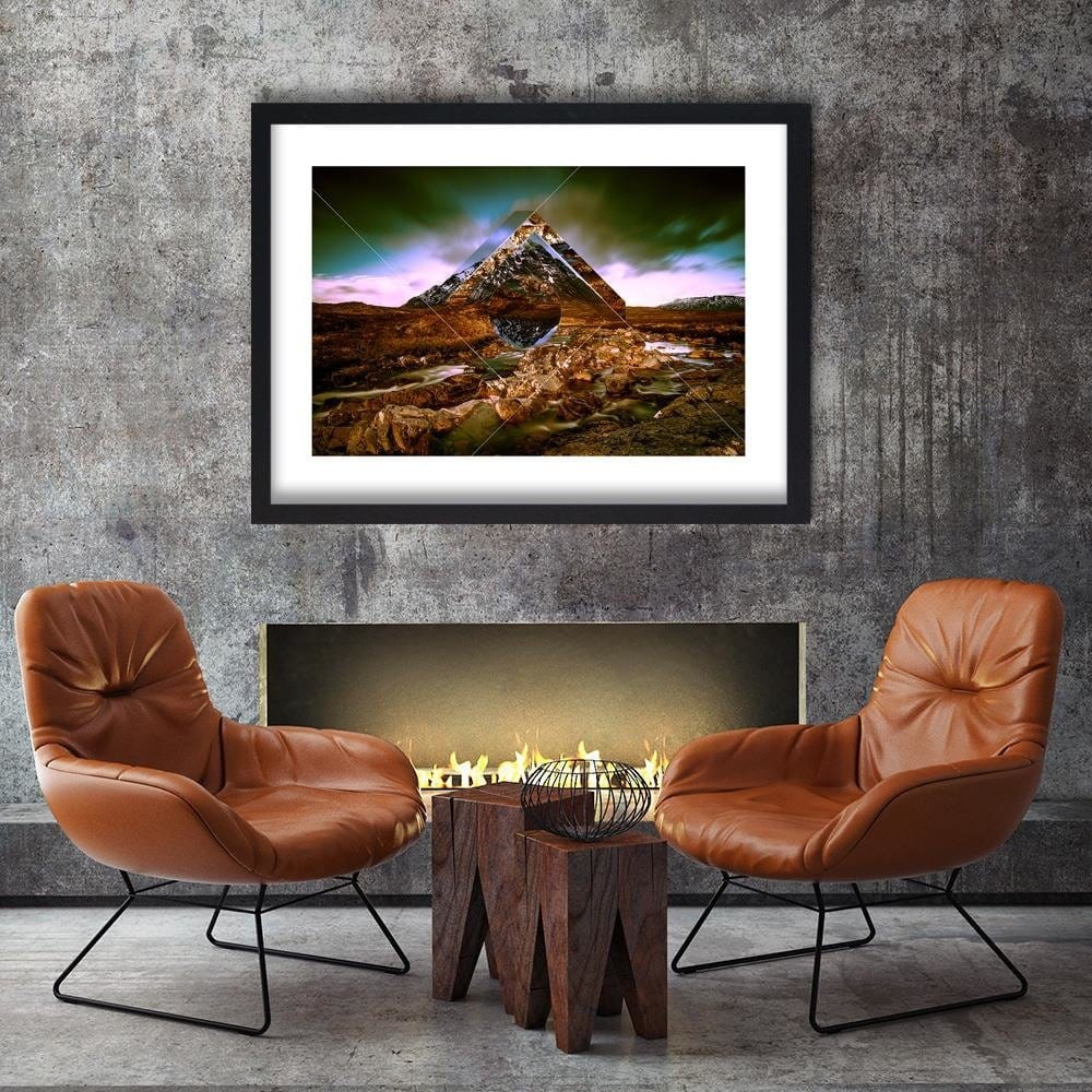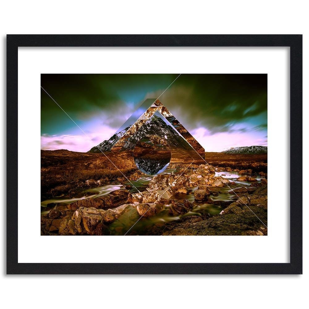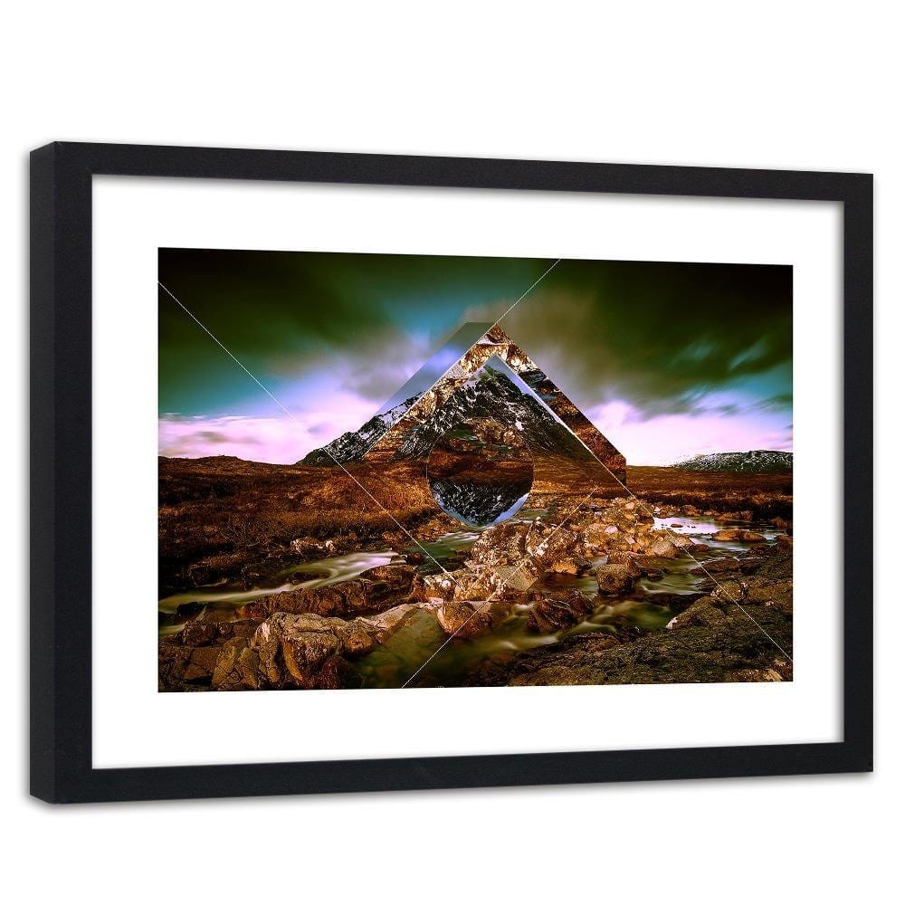 Glezna melnā rāmī - Mountain Landscape With Geometric Shapes 2