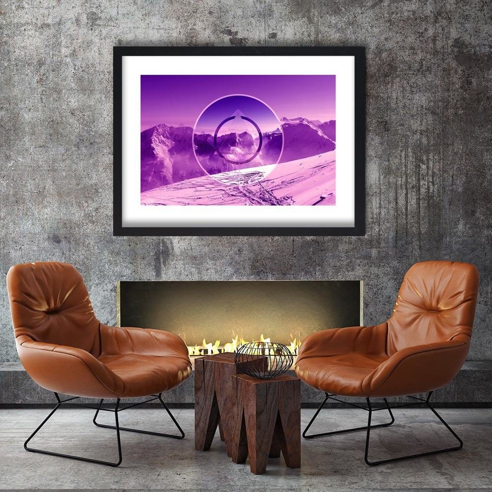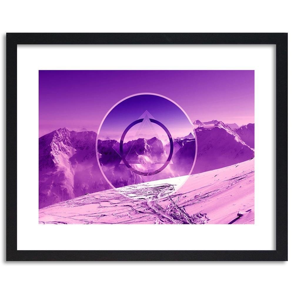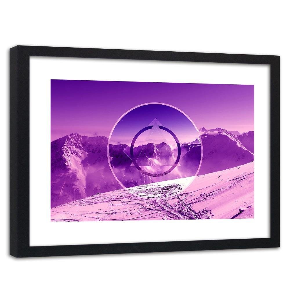 Glezna melnā rāmī - Mountains Covered With Snow With A Figure Of 3