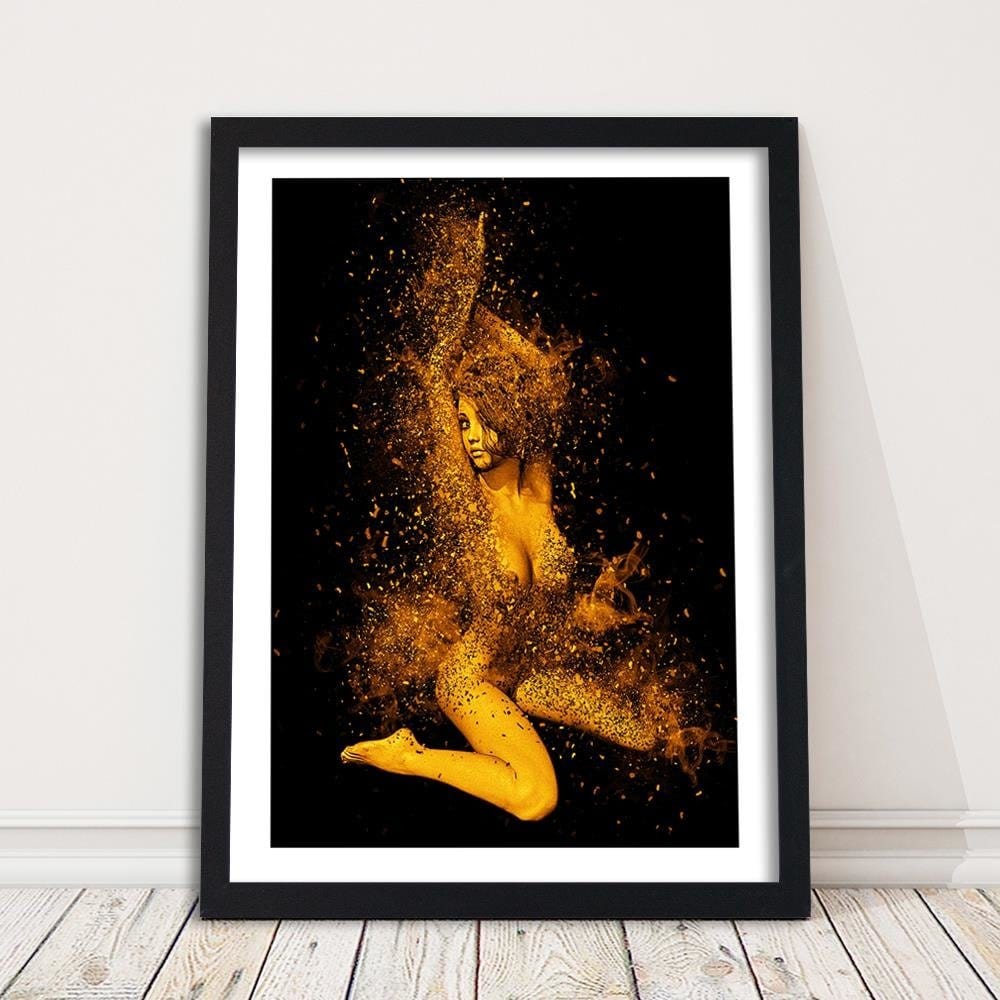Glezna melnā rāmī - Naked Woman In Gold Dust
