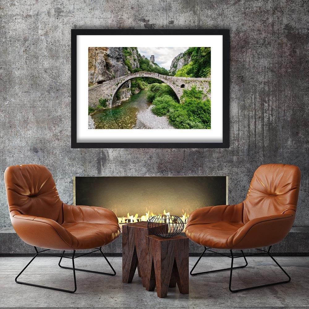 Glezna melnā rāmī - Old Stone Bridge