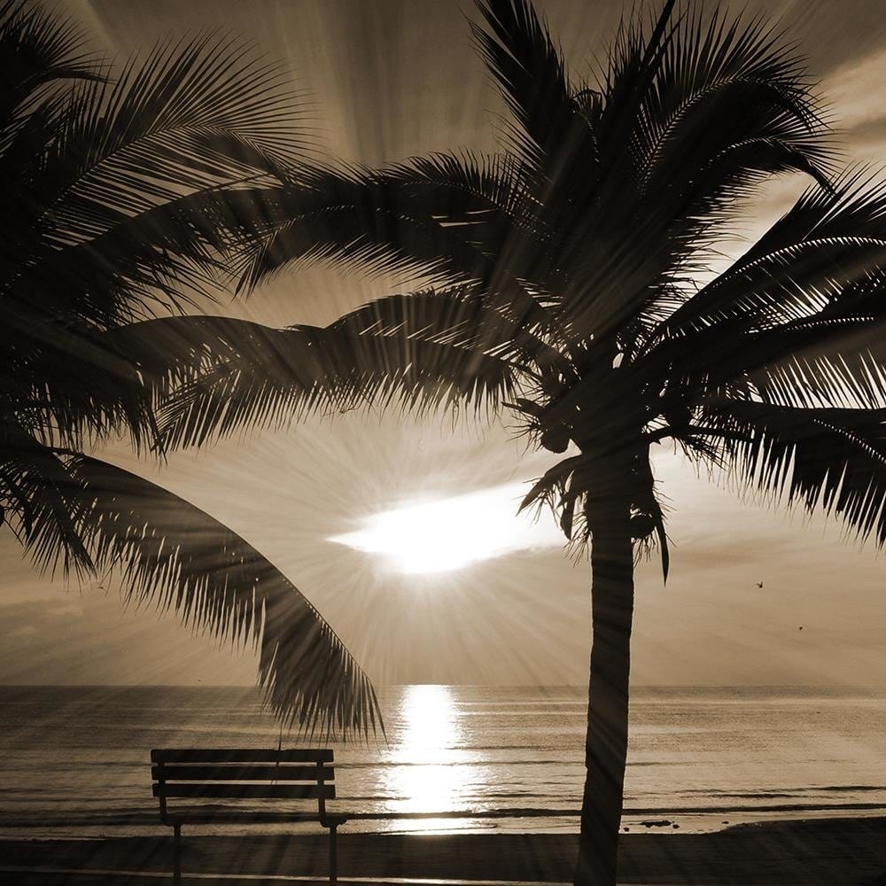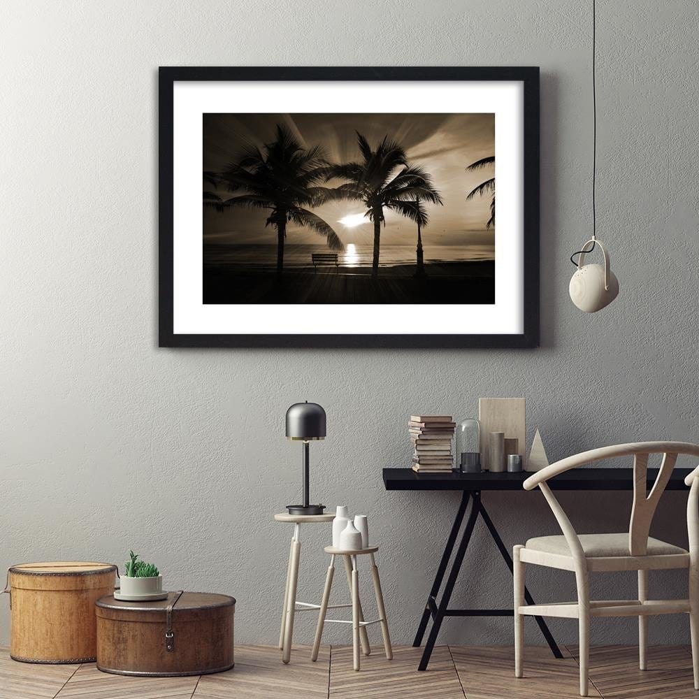 Glezna melnā rāmī - Palm Trees And Sun Rays 1