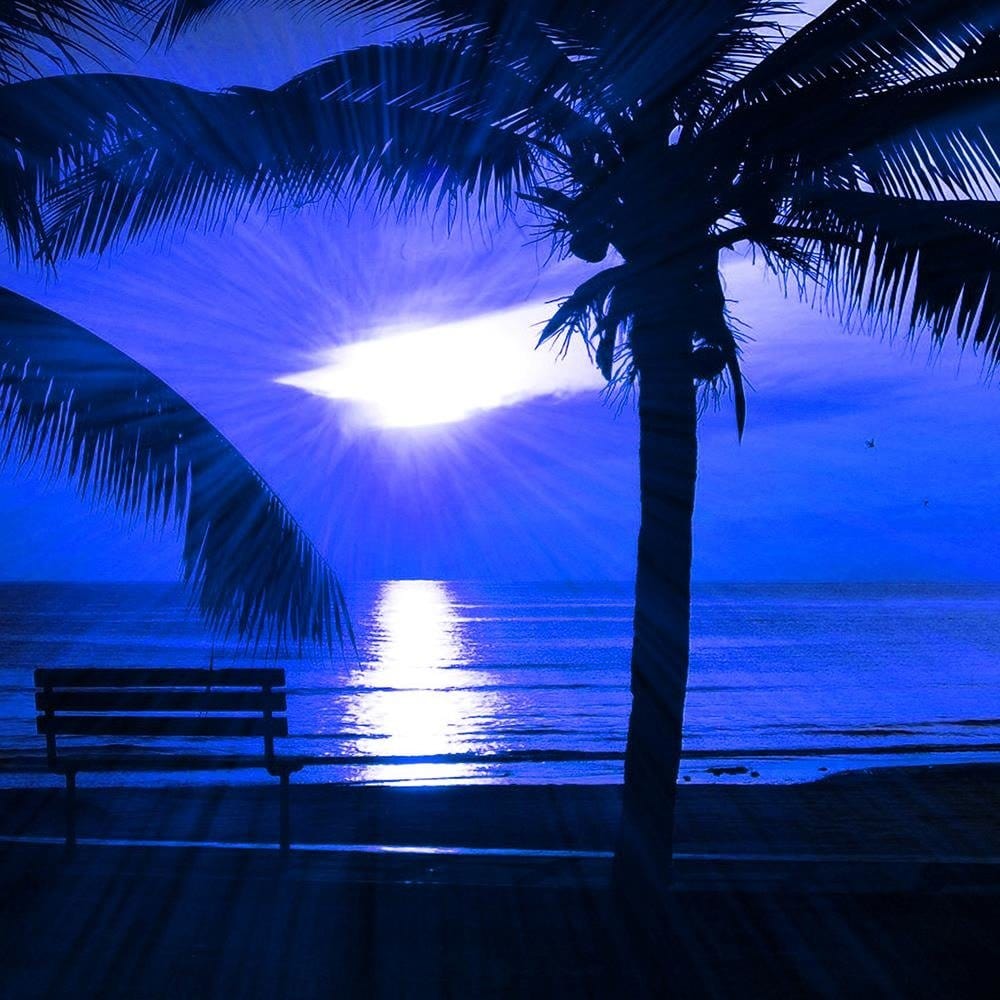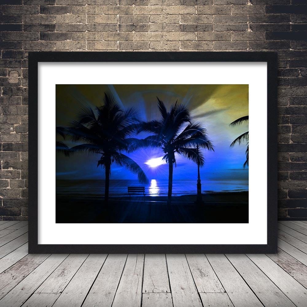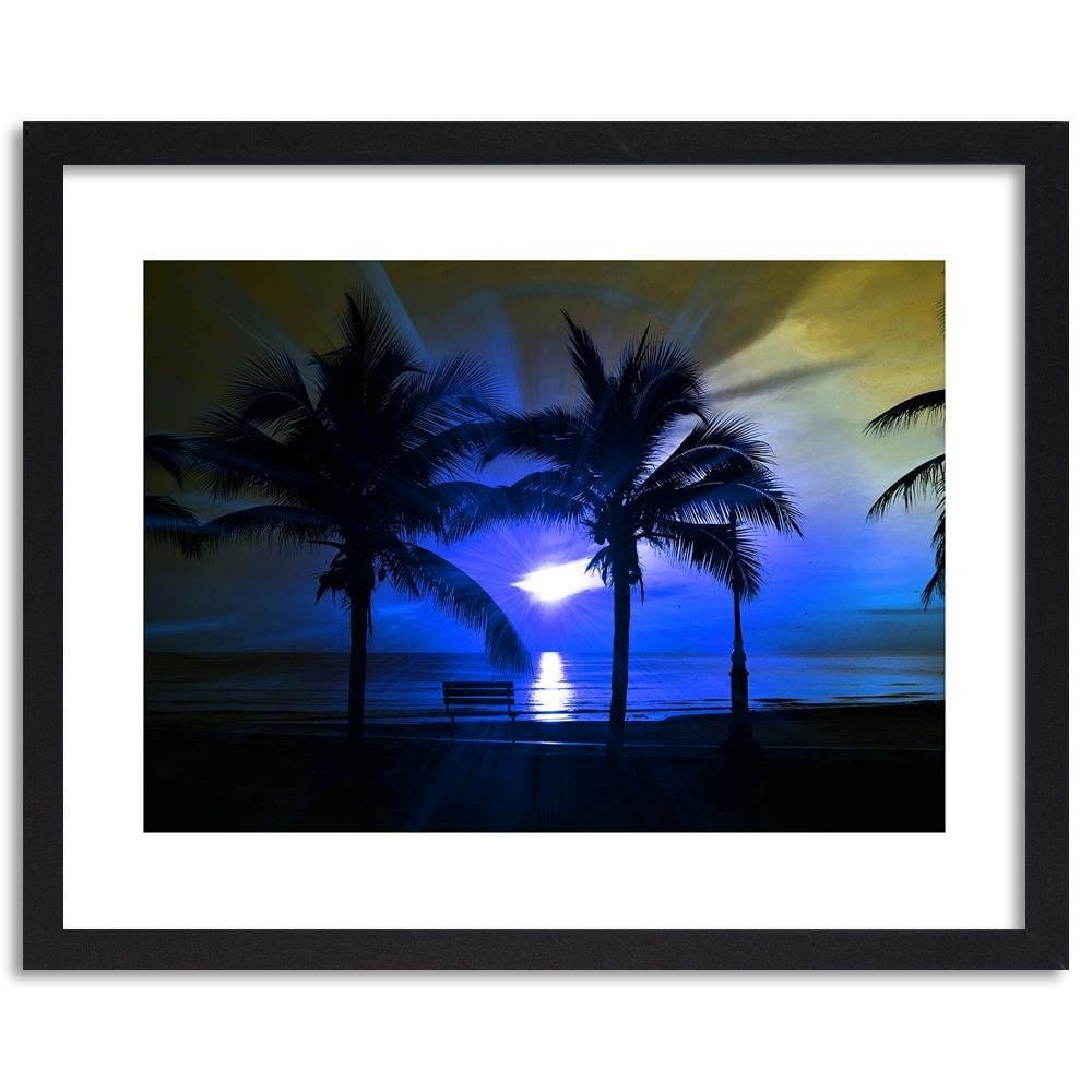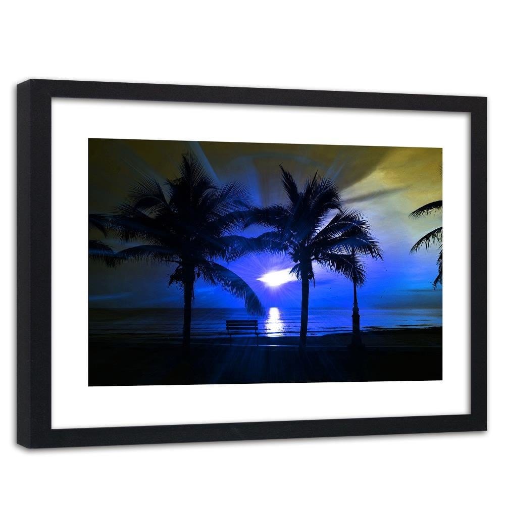 Glezna melnā rāmī - Palm Trees And Sun Rays