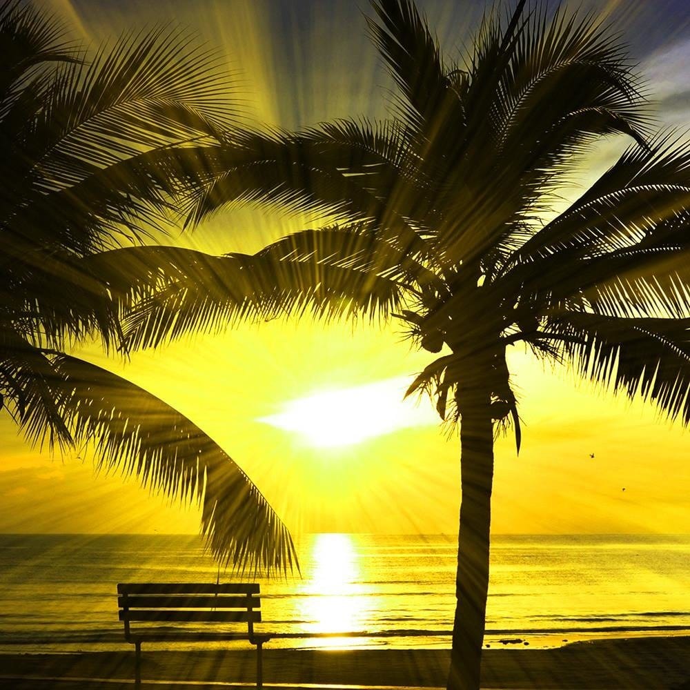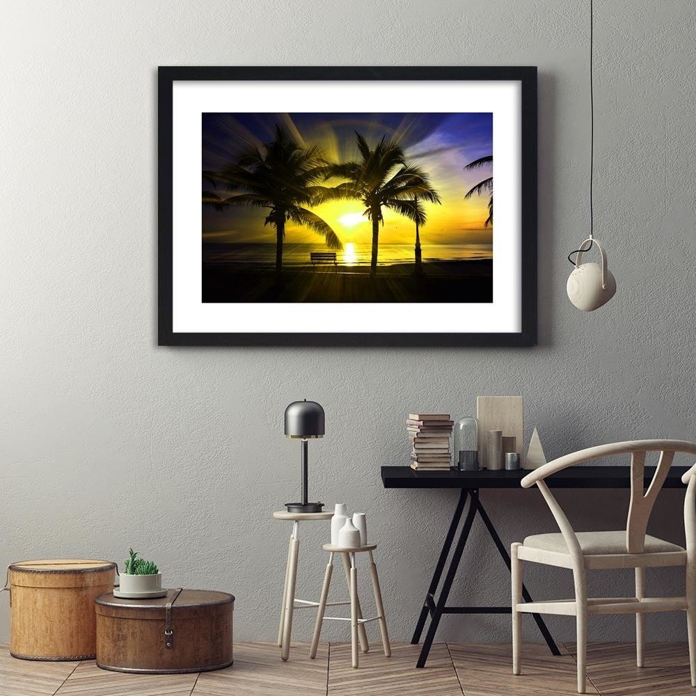 Glezna melnā rāmī - Palm Trees And Sun Rays 4