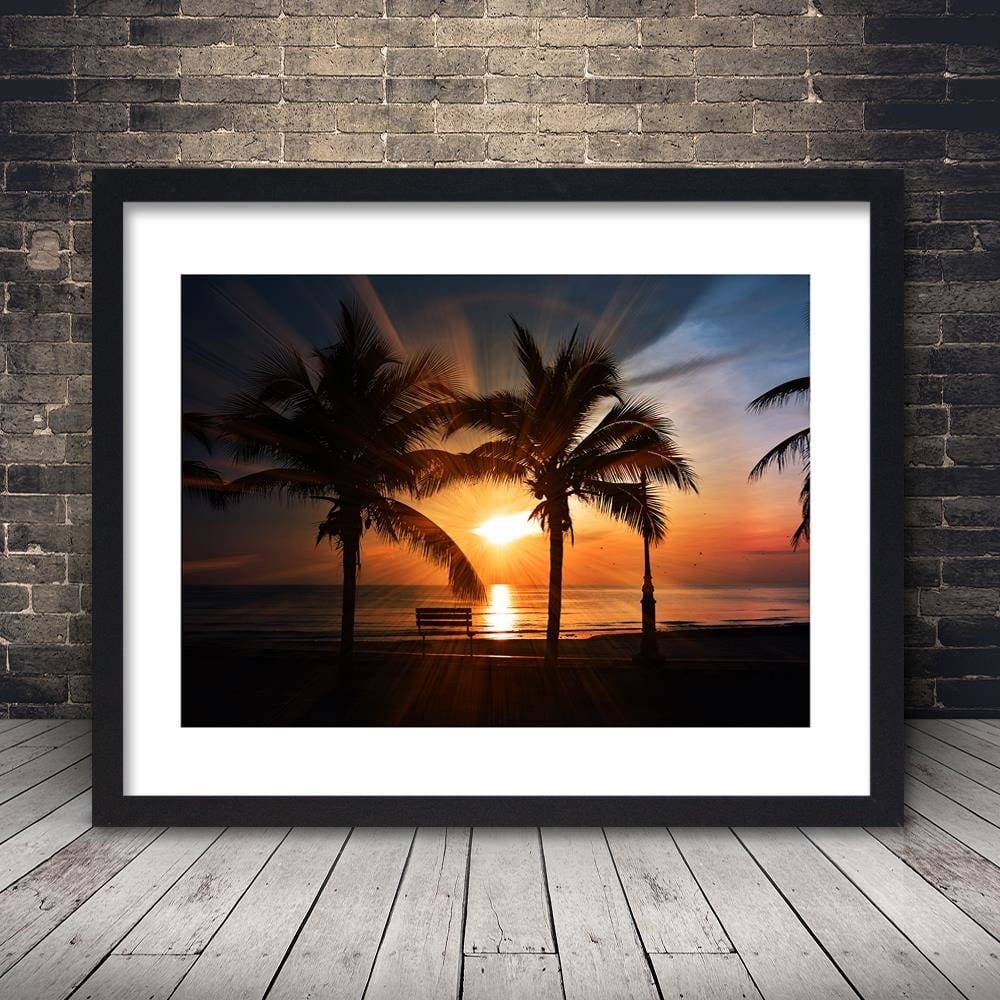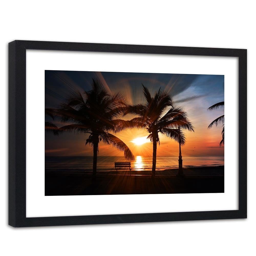 Glezna melnā rāmī - Palm Trees By The Sea At Sunset