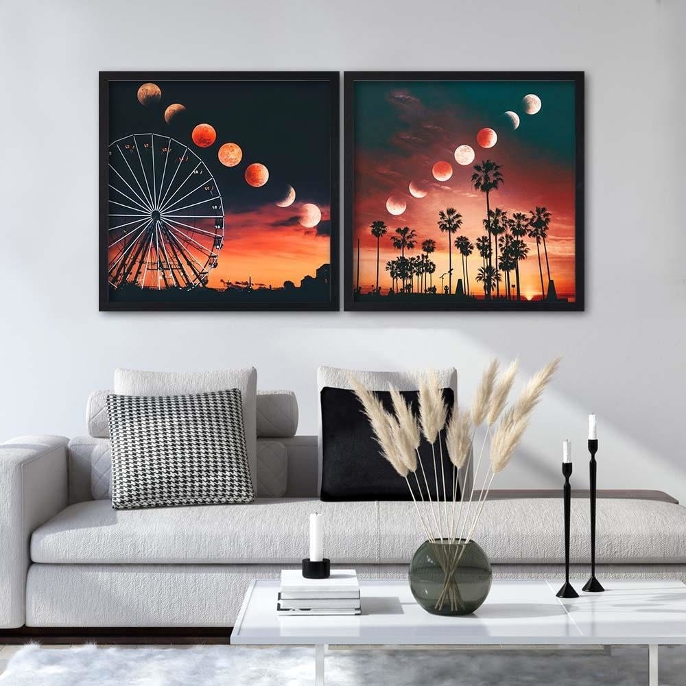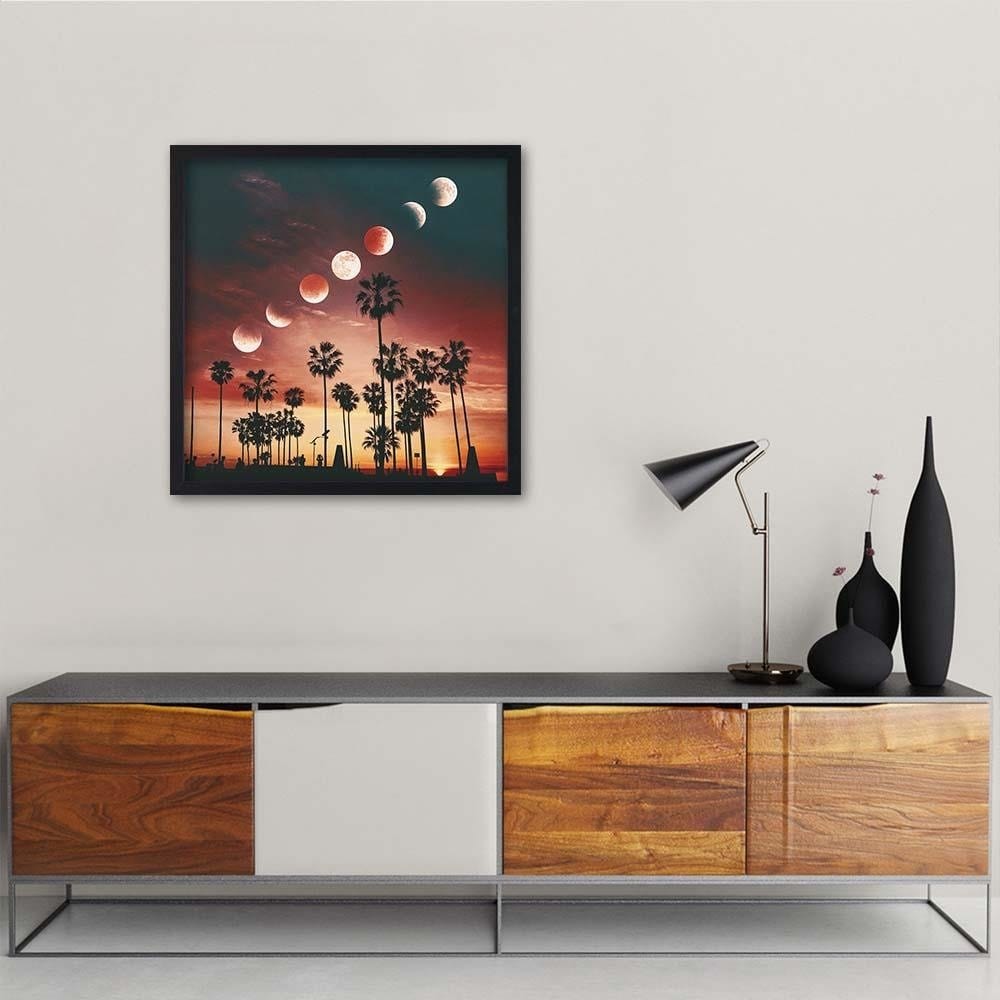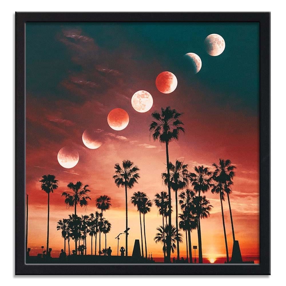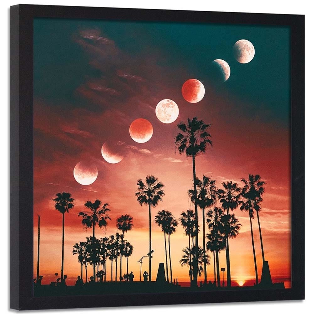 Glezna melnā rāmī - Phases Of The Moon Over Palm Trees