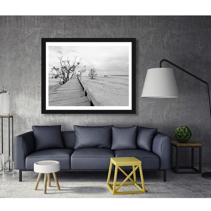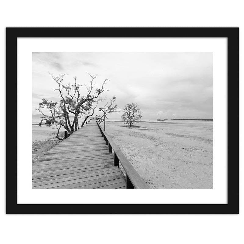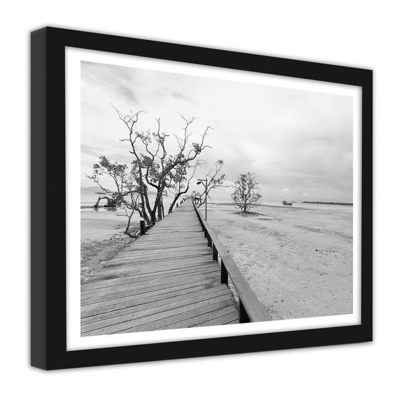 Glezna melnā rāmī - Picturesque landscape with a bridge