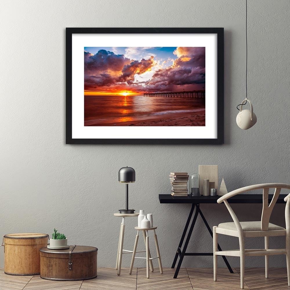 Glezna melnā rāmī - Pier And Sunset 4
