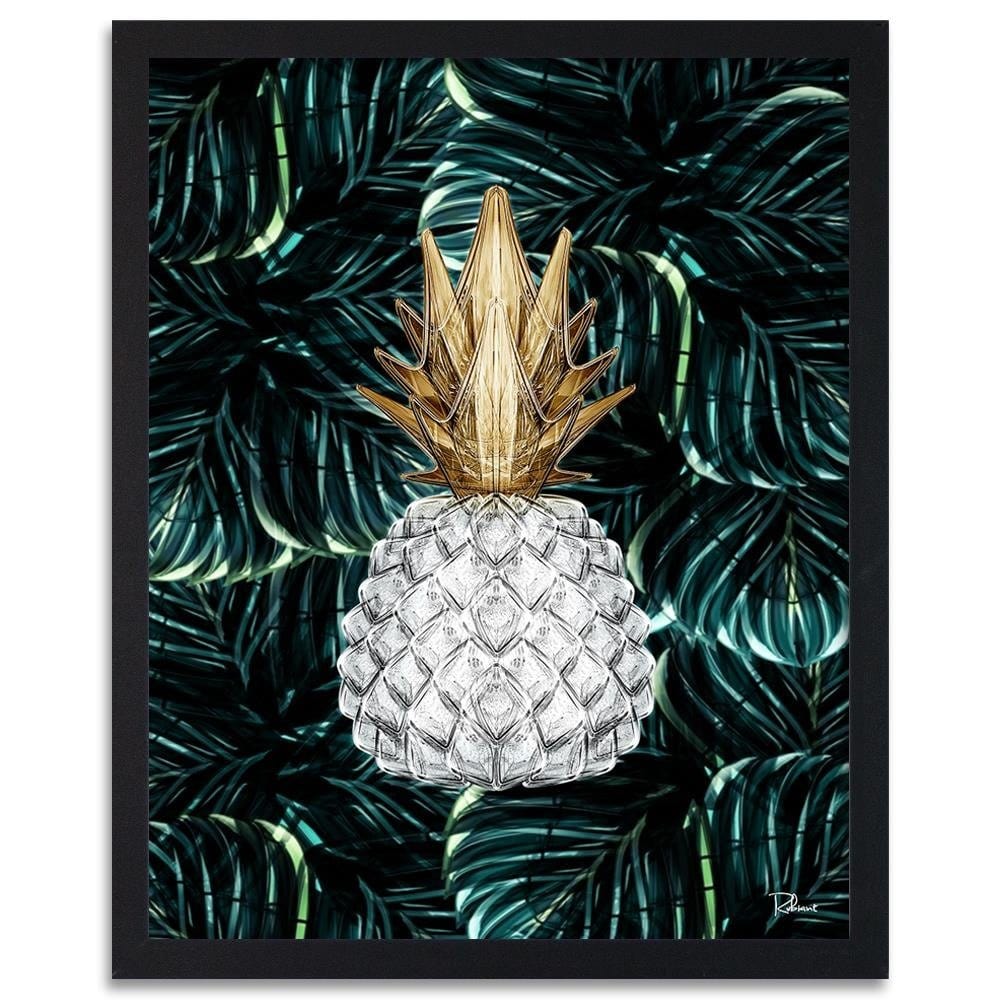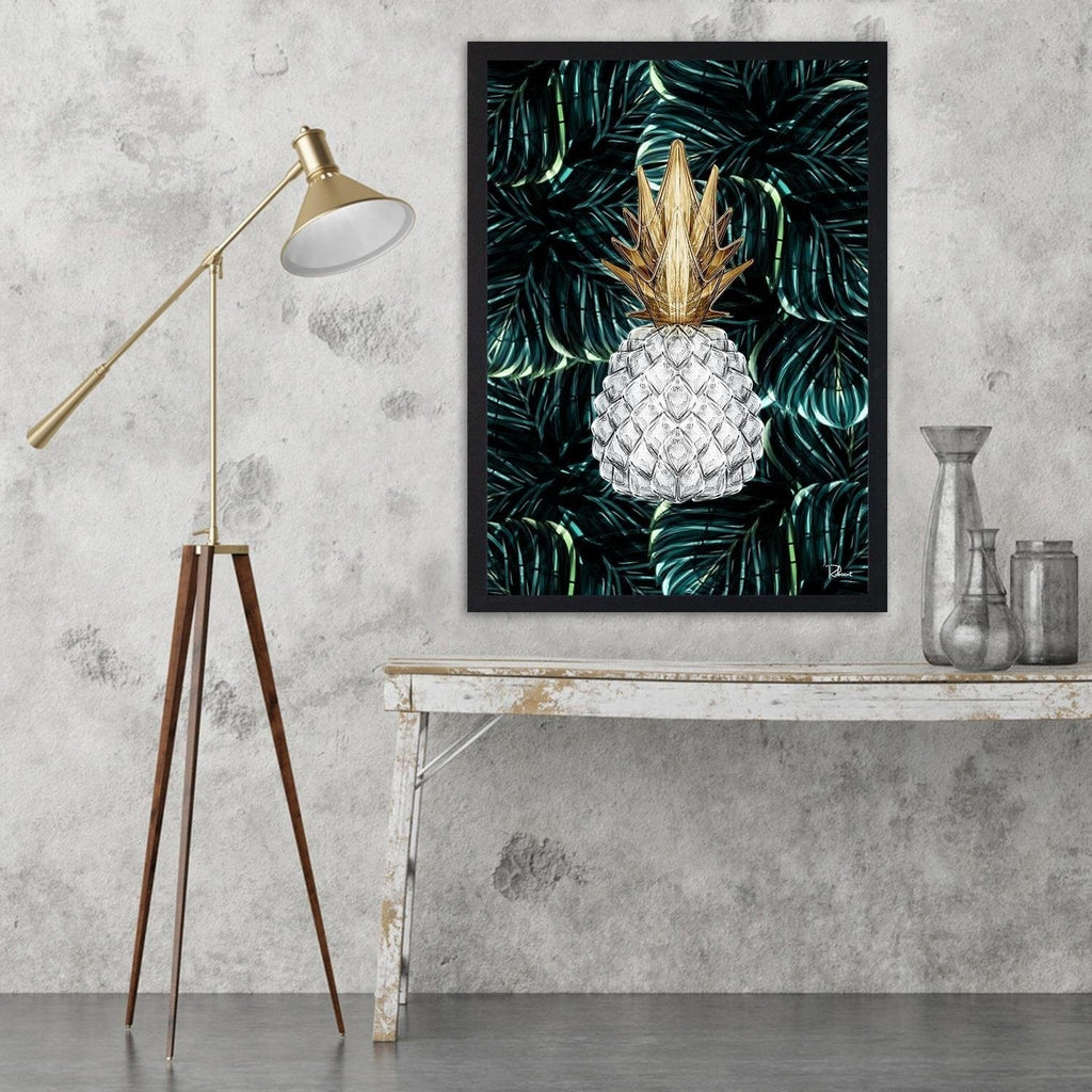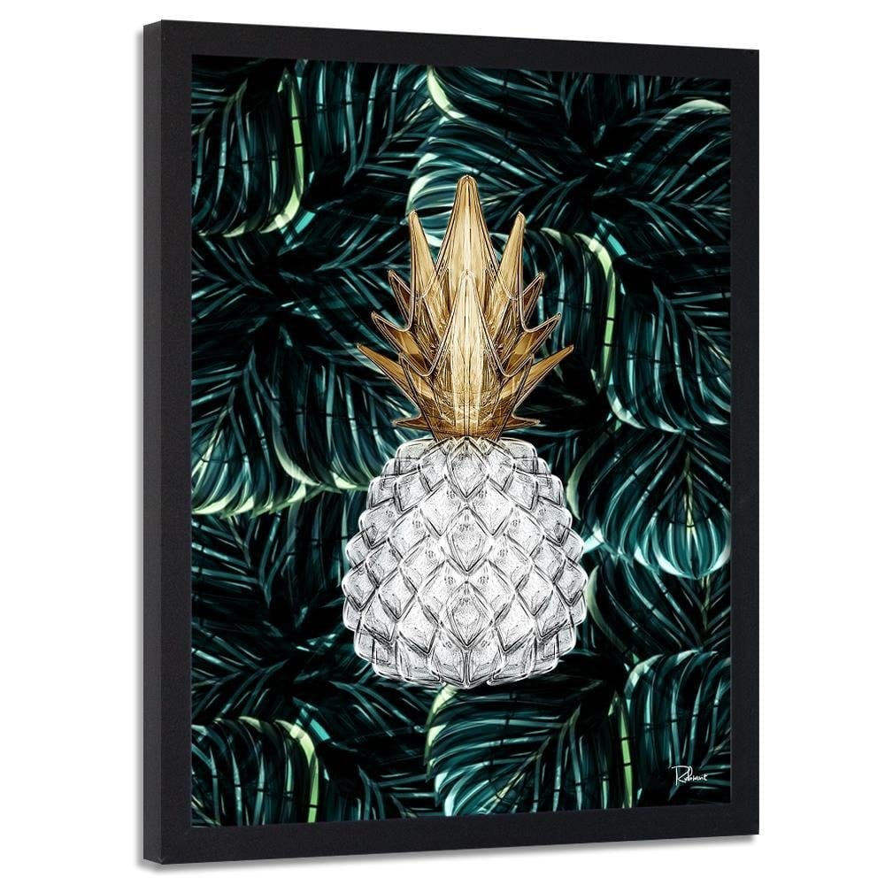Glezna melnā rāmī - Pineapple Image Tropical Green