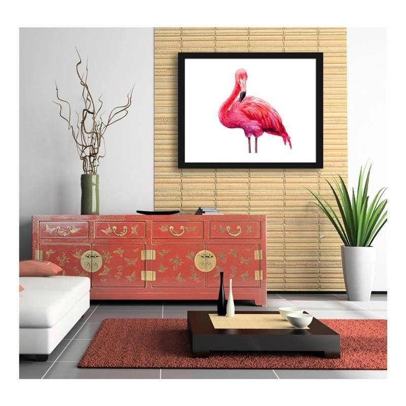 Glezna melnā rāmī - Realistic illustration of a pink flamingo