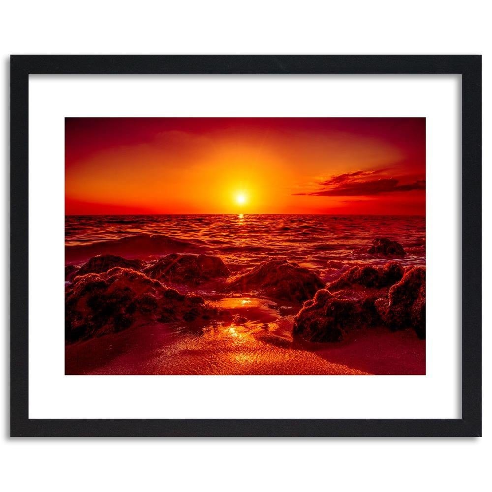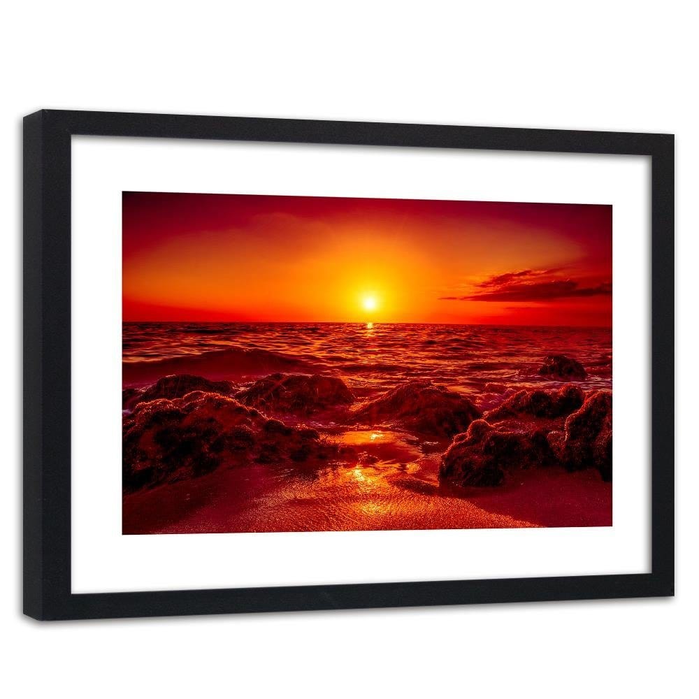 Glezna melnā rāmī - Red Sunset Over The Sea