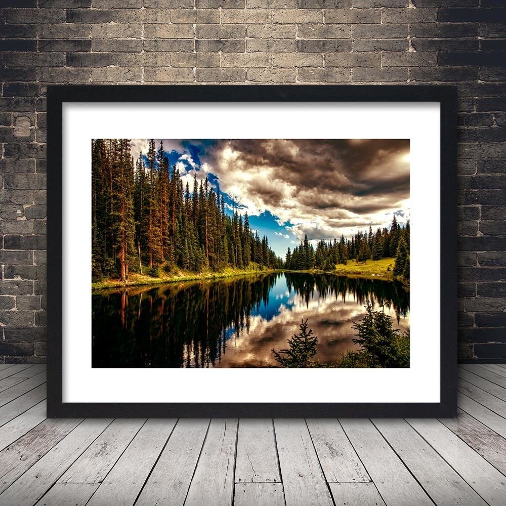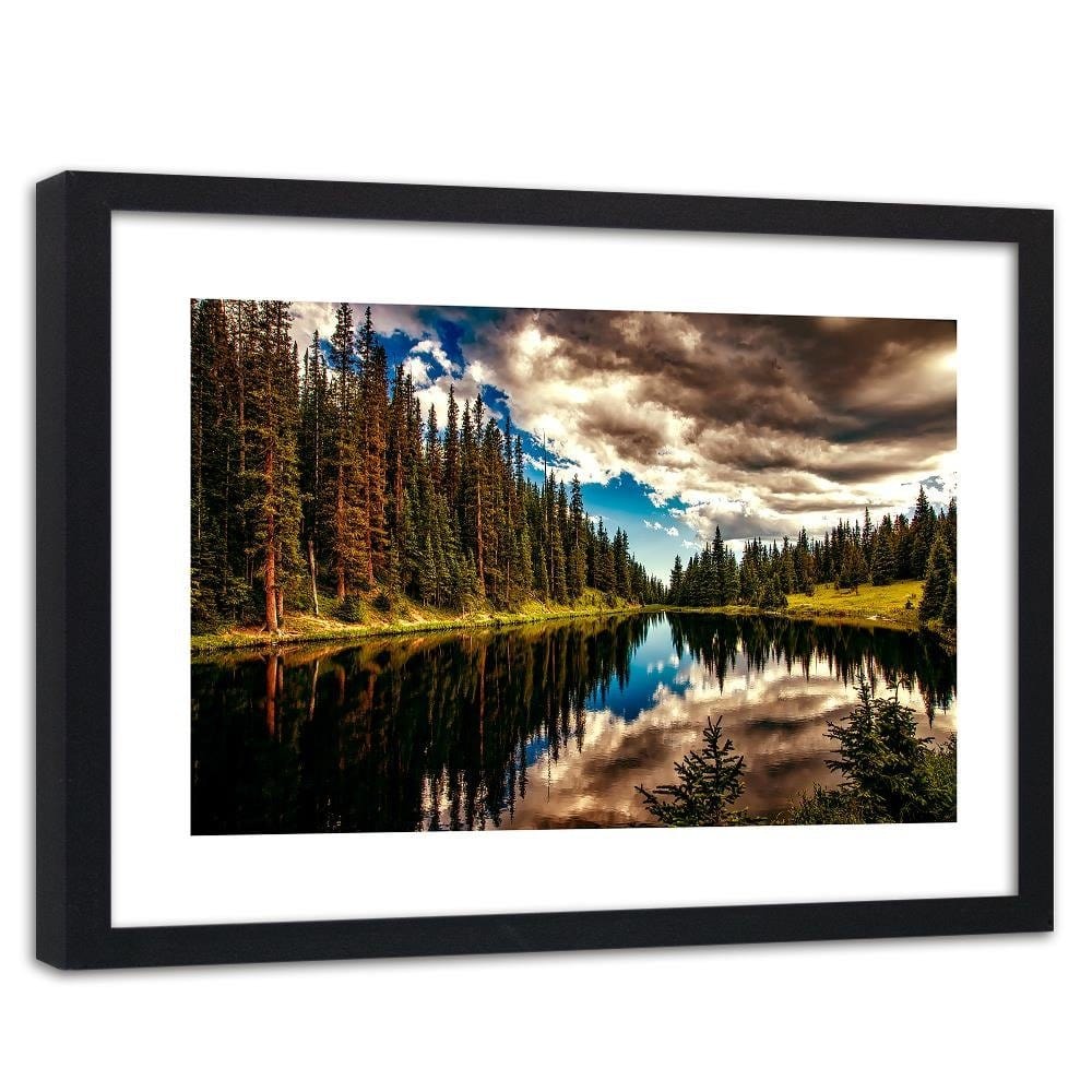 Glezna melnā rāmī - Reflection Of The Sky In The Lake