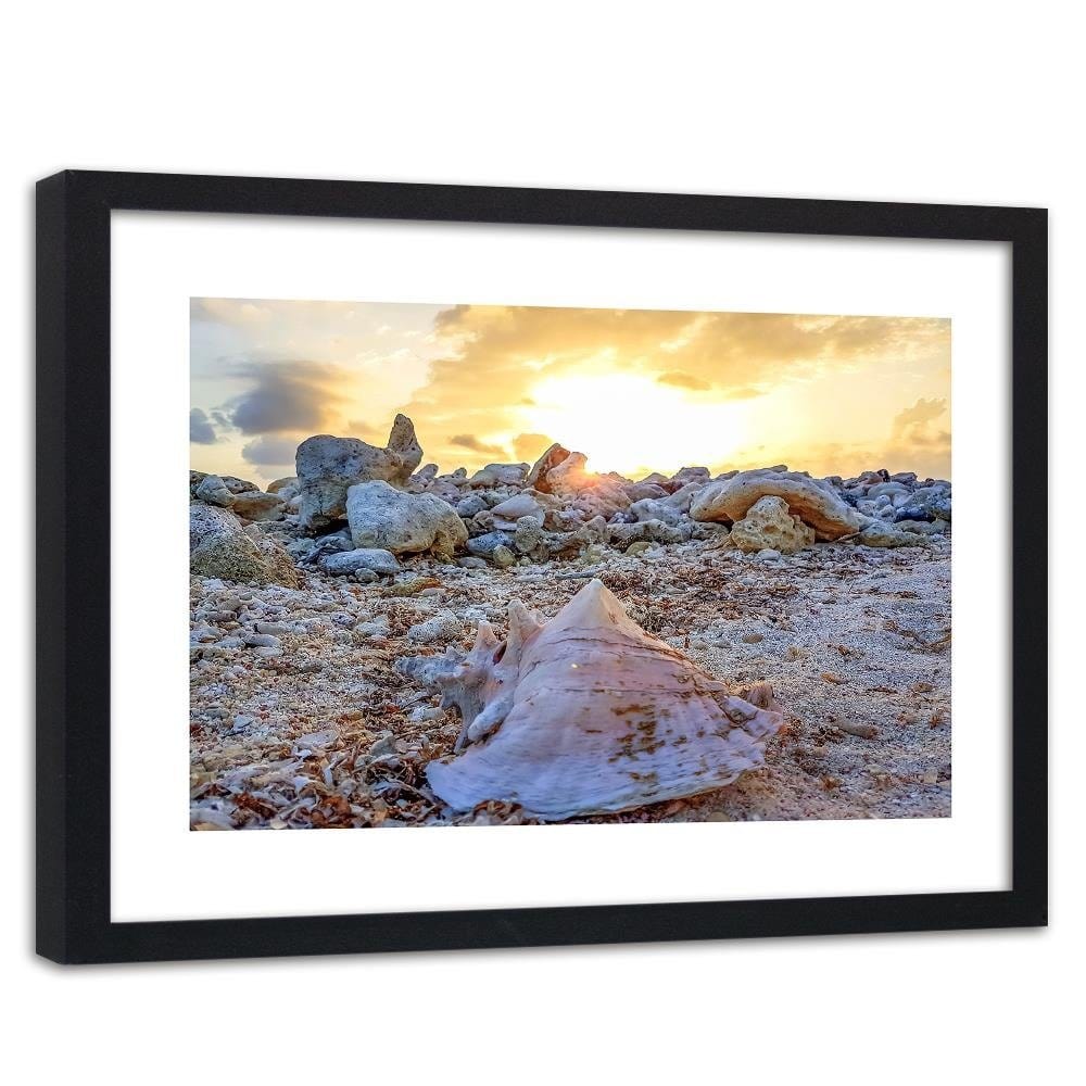 Glezna melnā rāmī - Seashell And Stones