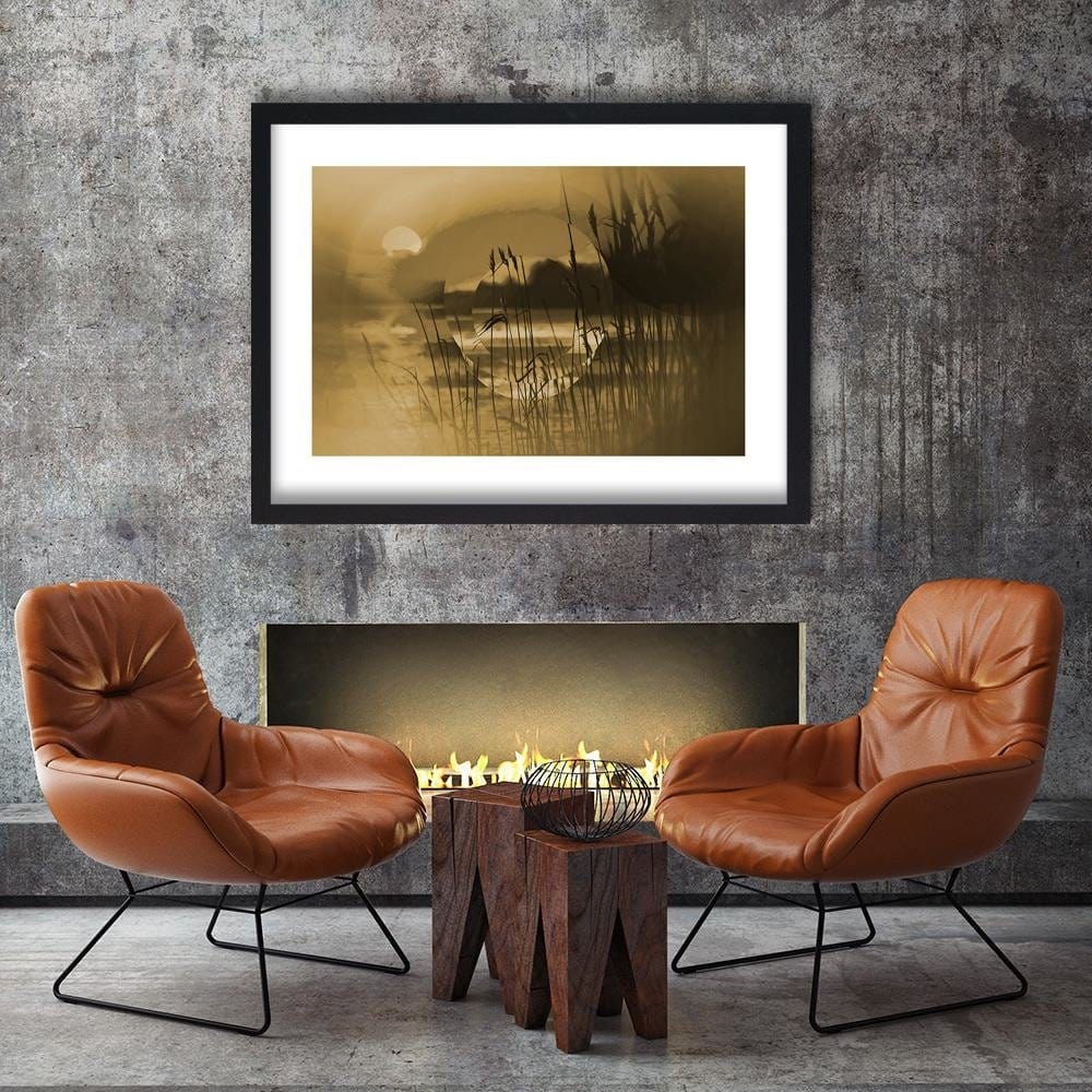 Glezna melnā rāmī - Sunset Geometry Sepia