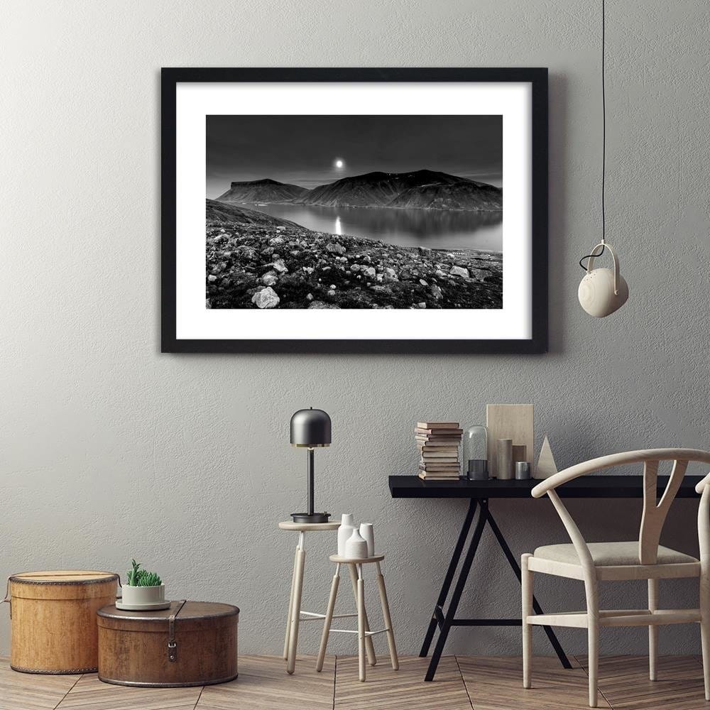 Glezna melnā rāmī - Sunset Over A Mountain Lake 2