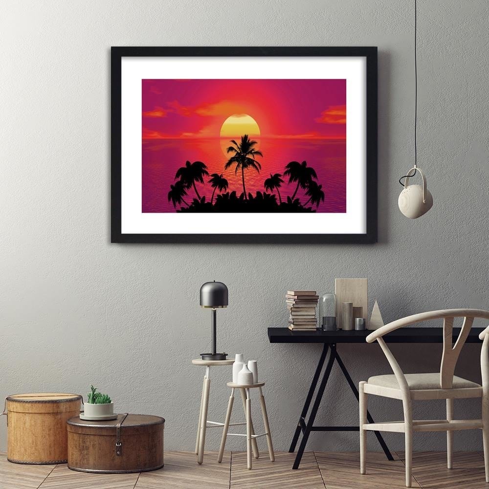 Glezna melnā rāmī - Sunset With Palm Trees 3