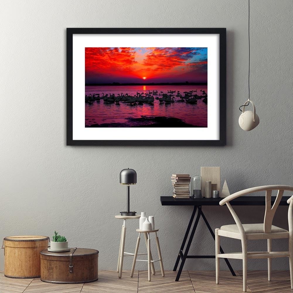 Glezna melnā rāmī - Swans On The Shore Of A Lake 4