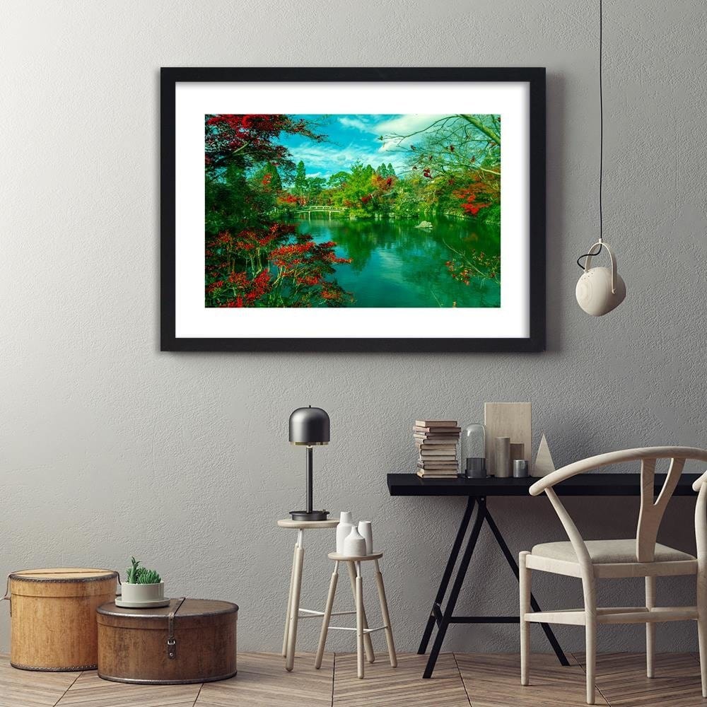 Glezna melnā rāmī - The Bridge Over The River In The Park 4