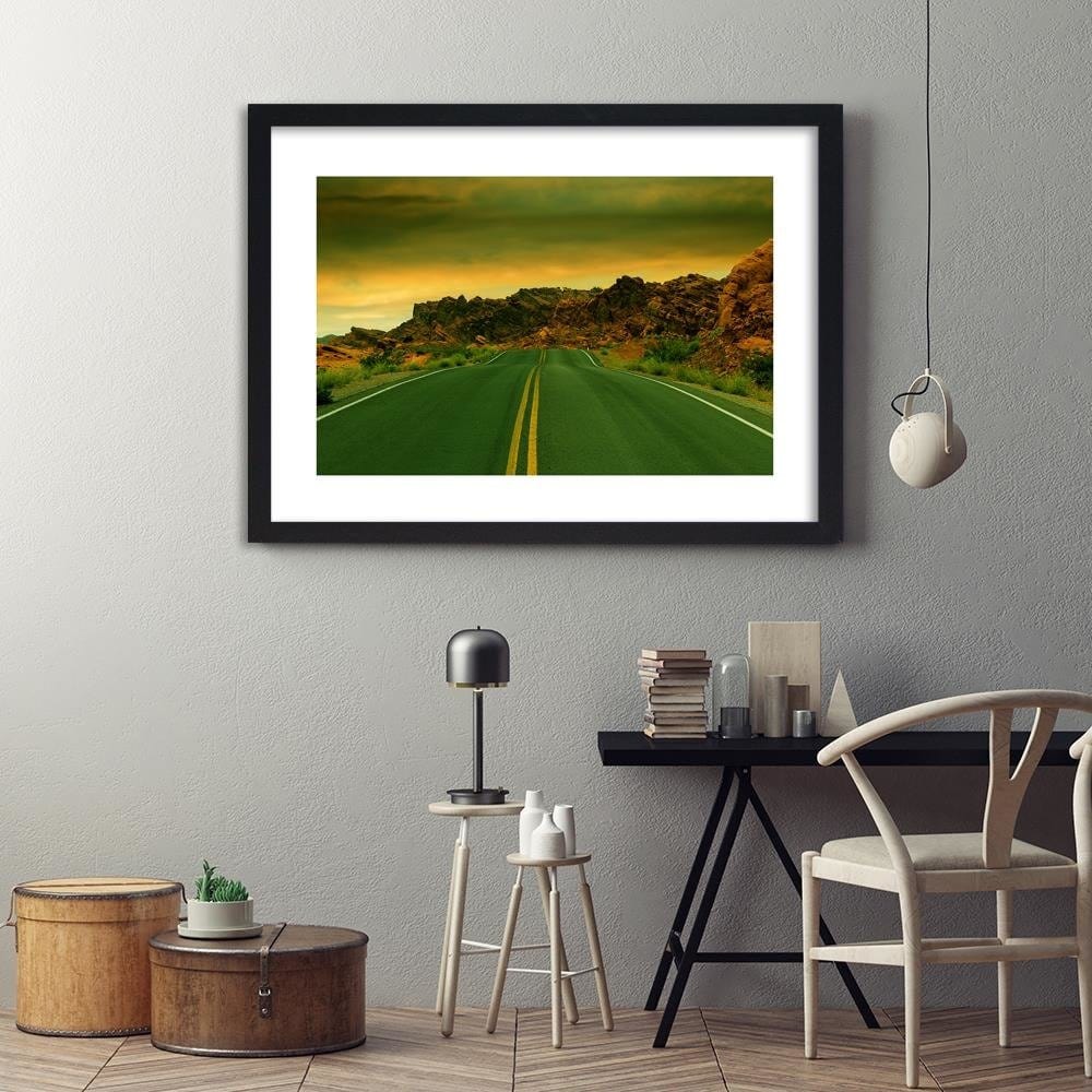 Glezna melnā rāmī - The Road In The Desert 3