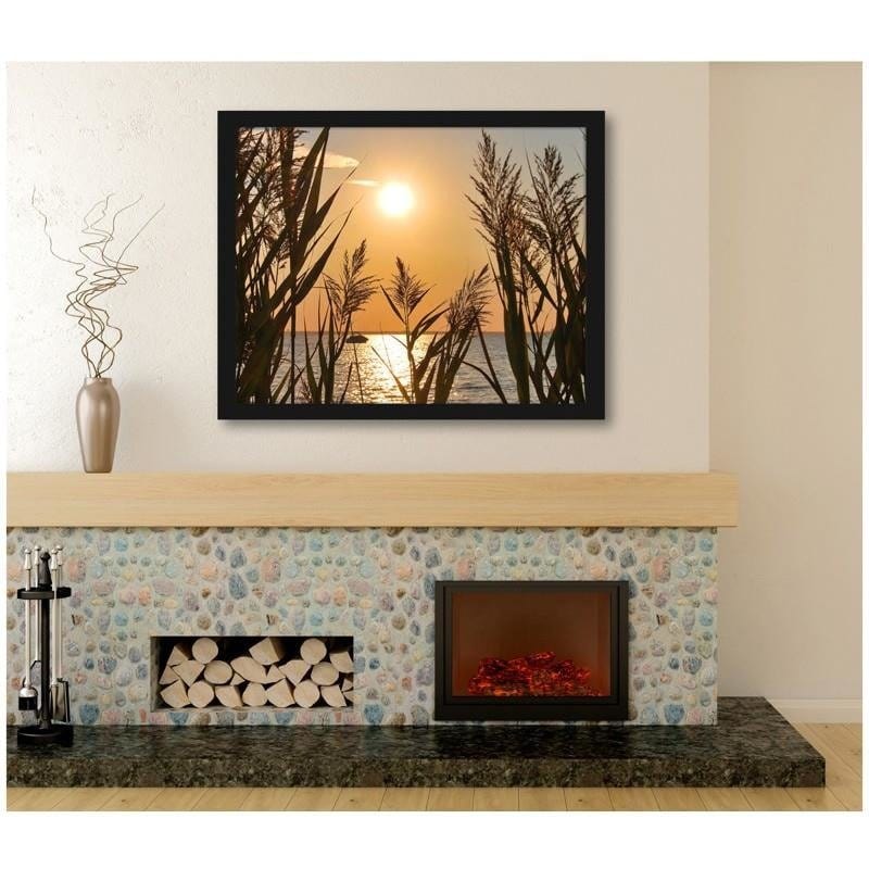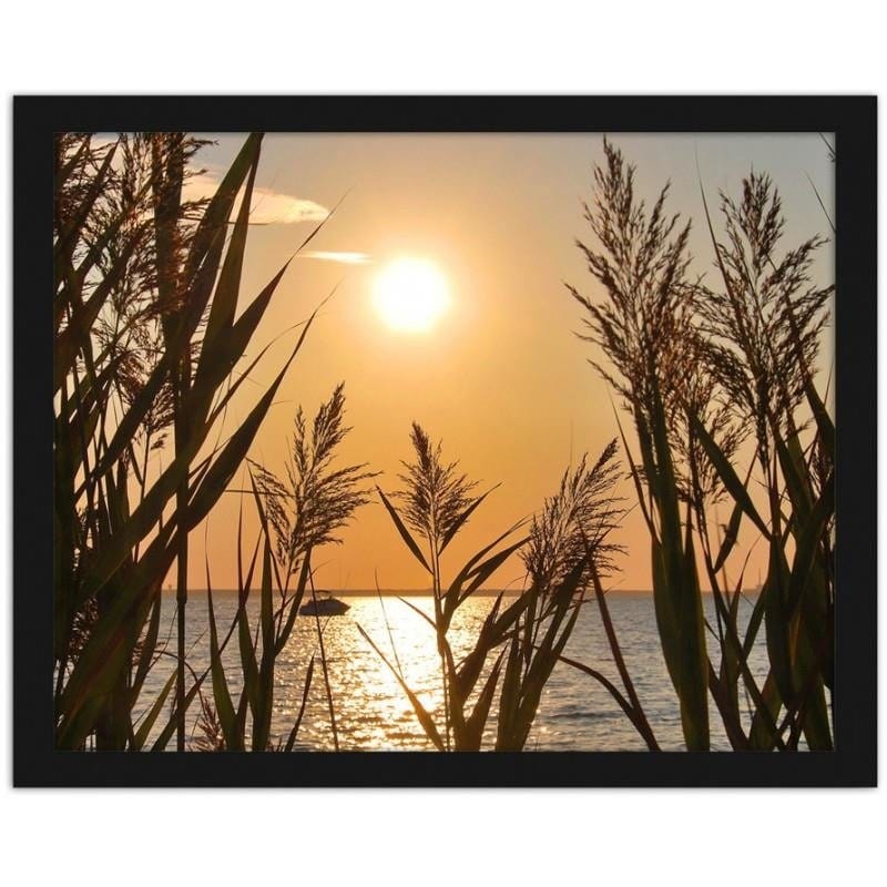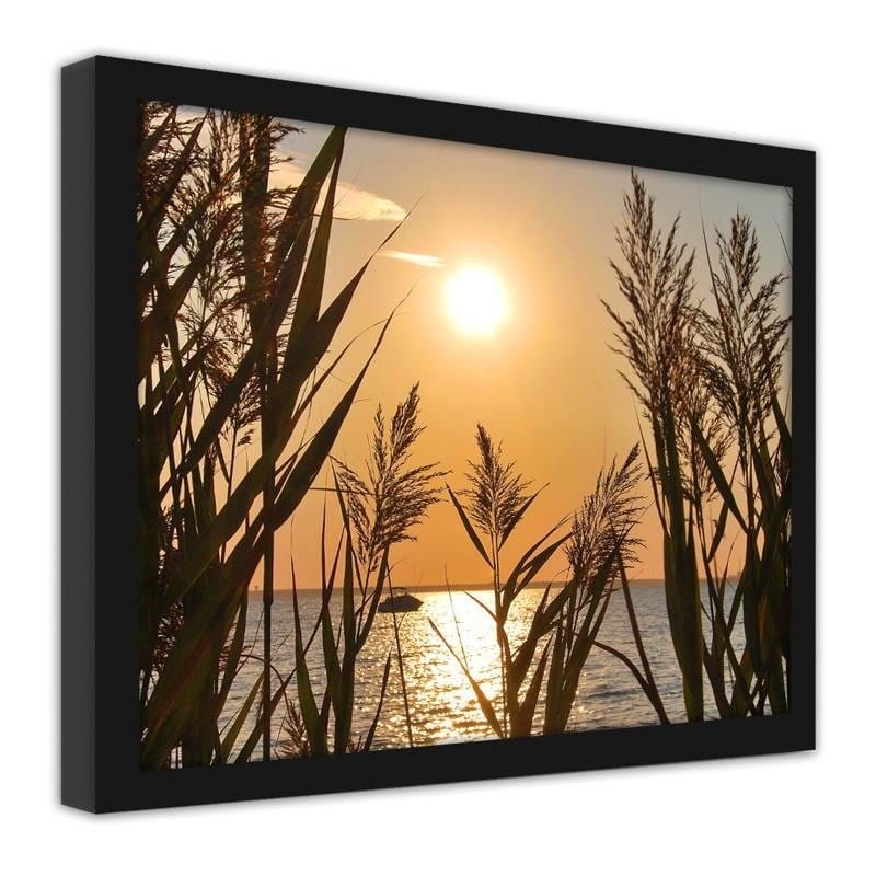 Glezna melnā rāmī - The sunset at the lake