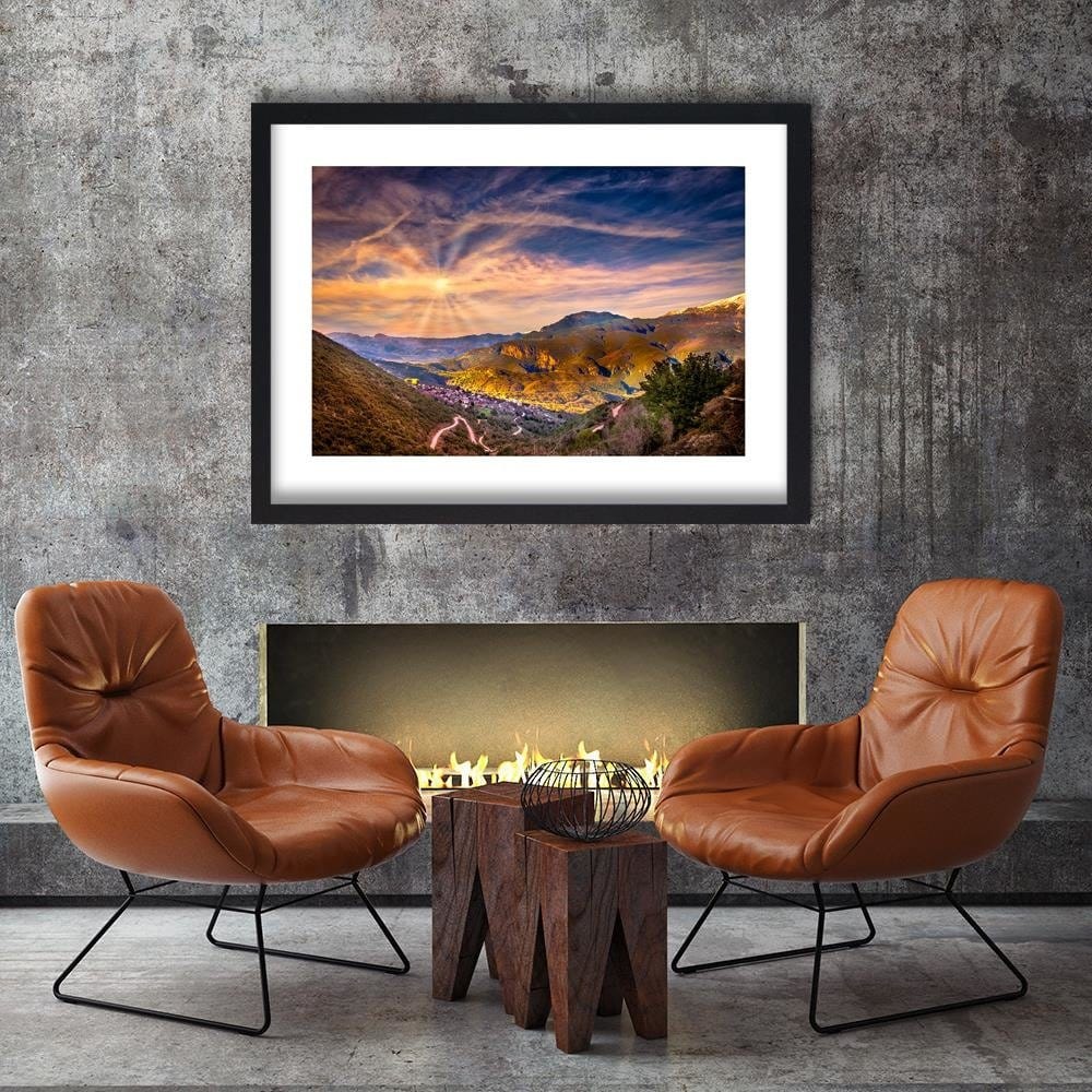 • Decorative picture framed with 2 cm wide MDF frame. Without glass or plexiglass cover.