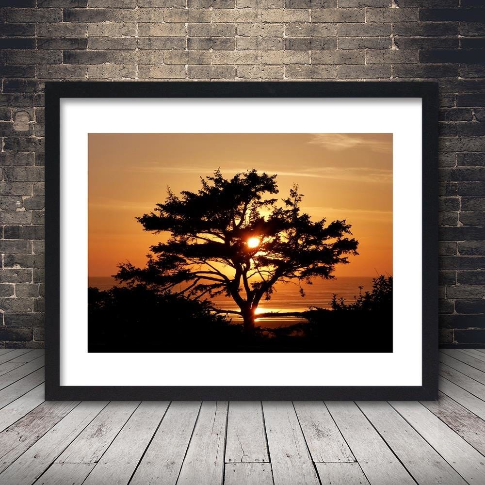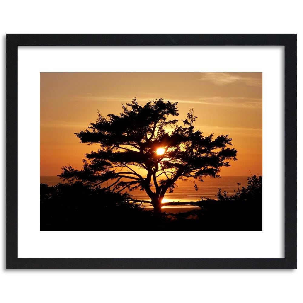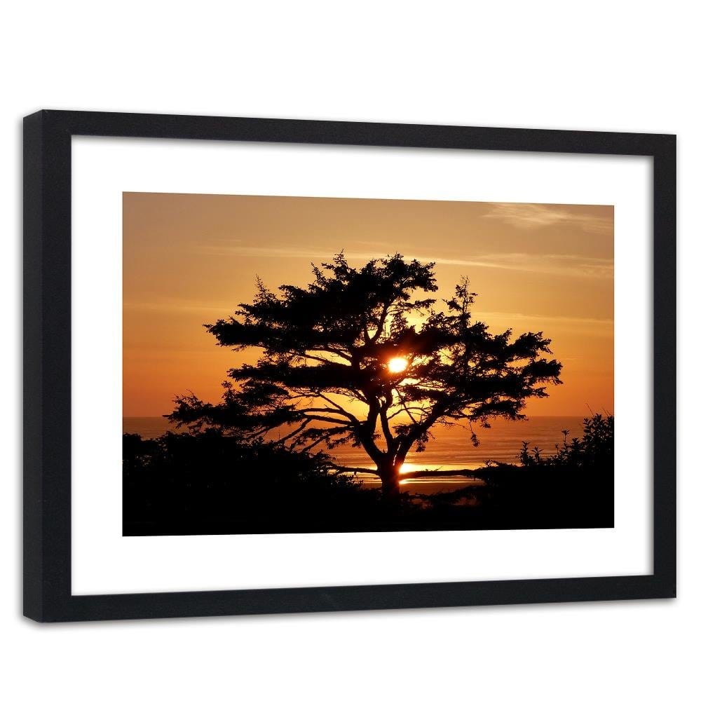 Glezna melnā rāmī - Tree By The Sea At Sunset