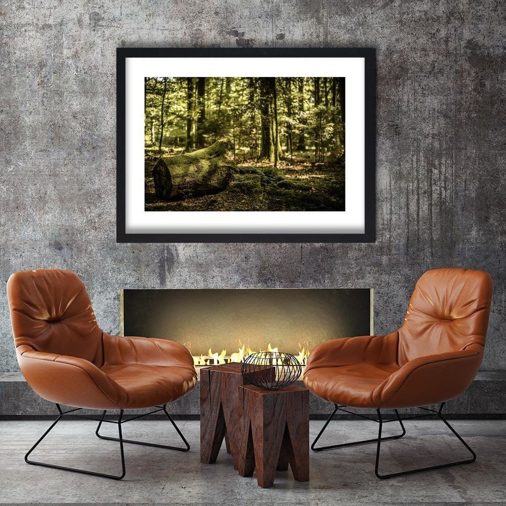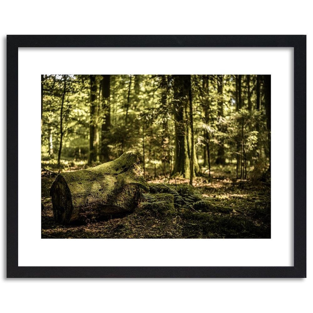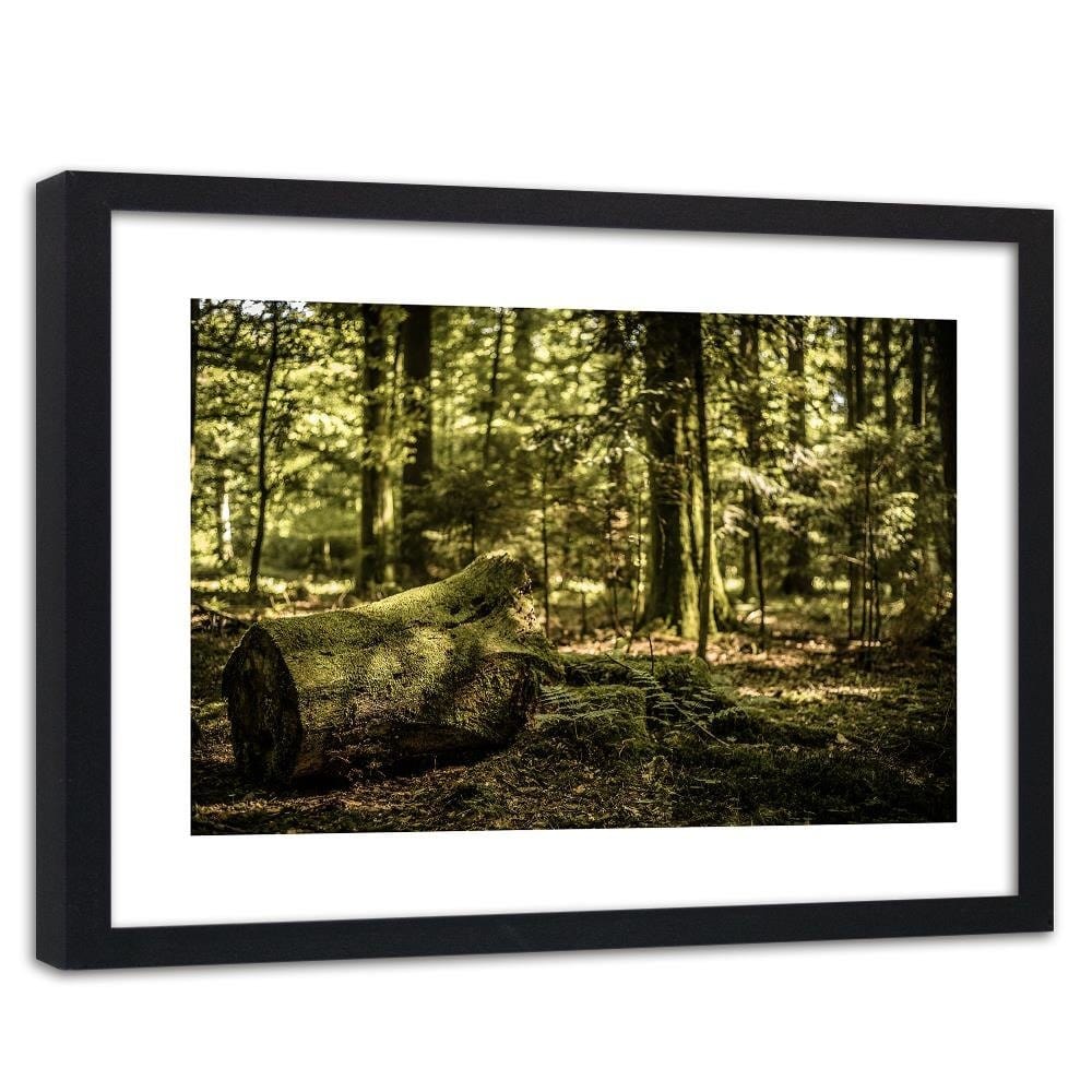 Glezna melnā rāmī - Trunk Covered With Moss