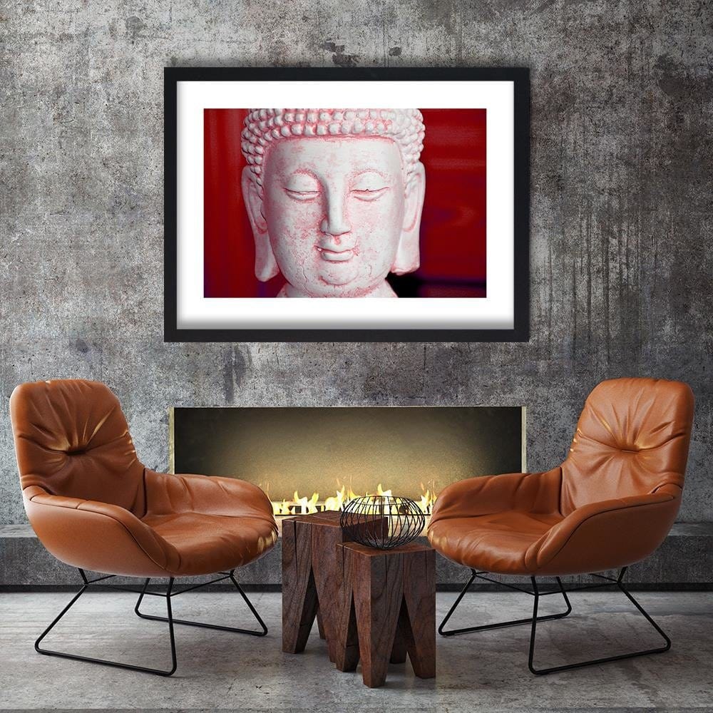 Glezna melnā rāmī - White Buddha Head