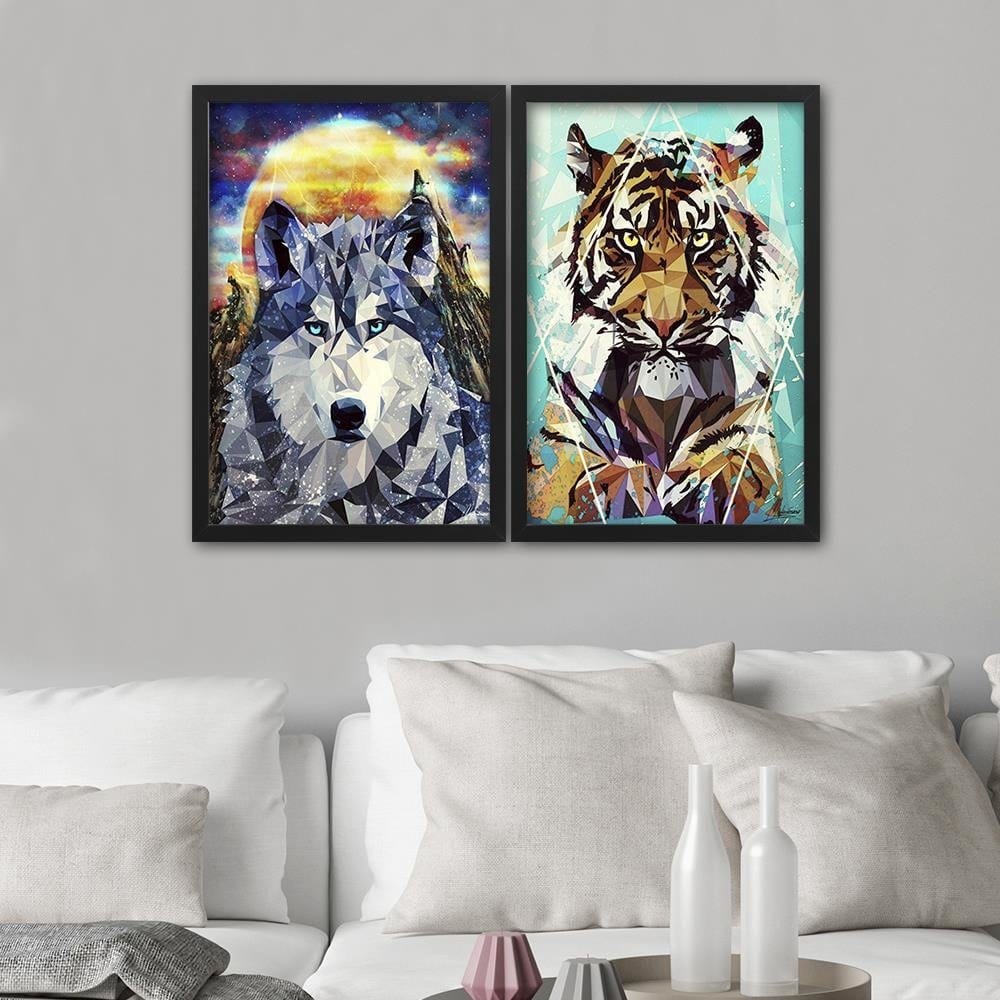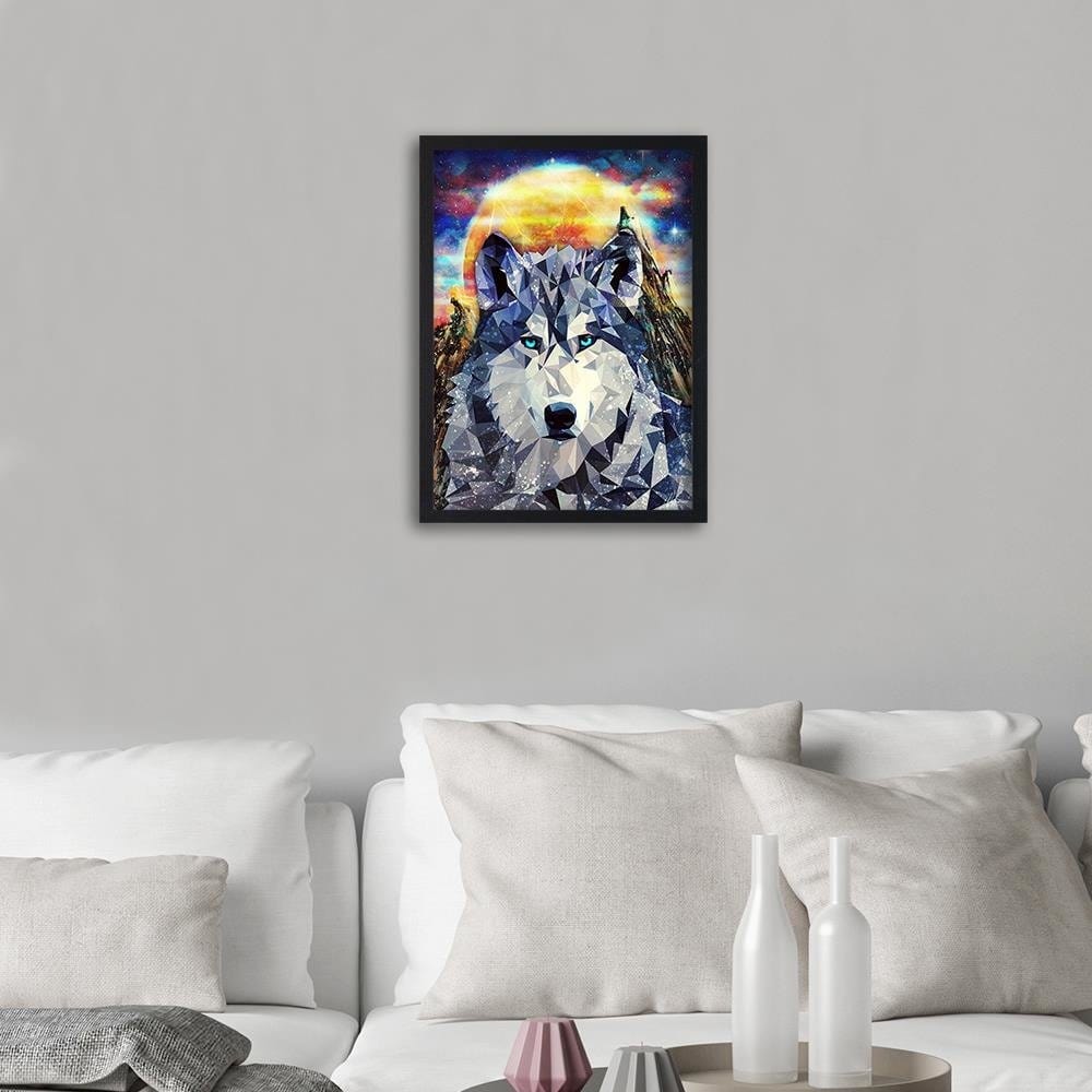 Glezna melnā rāmī - Wolf On A Background Of Mountains