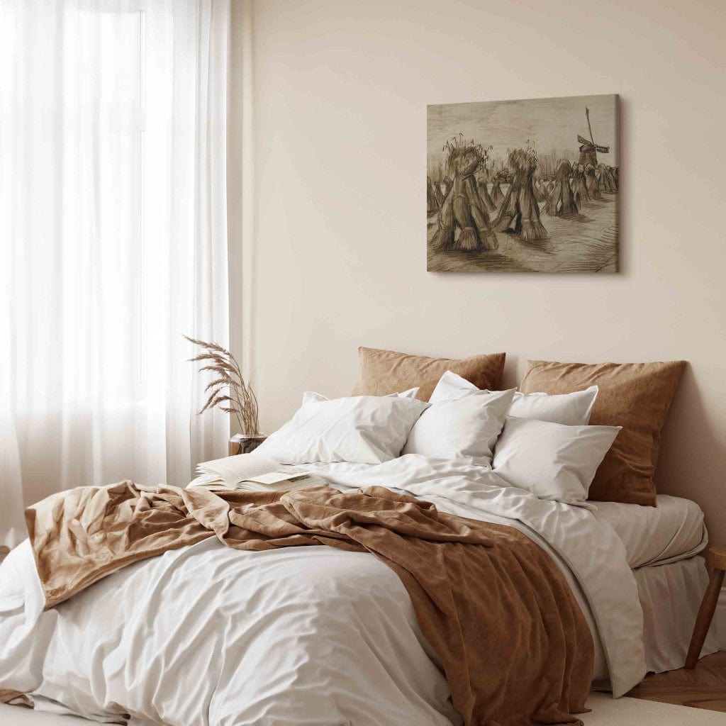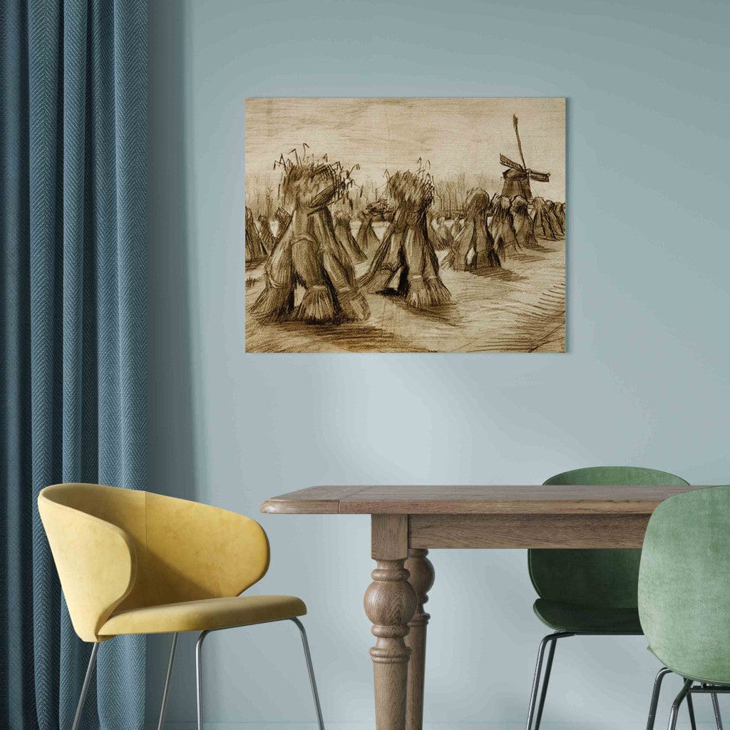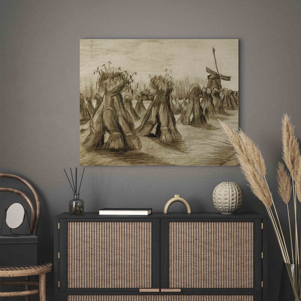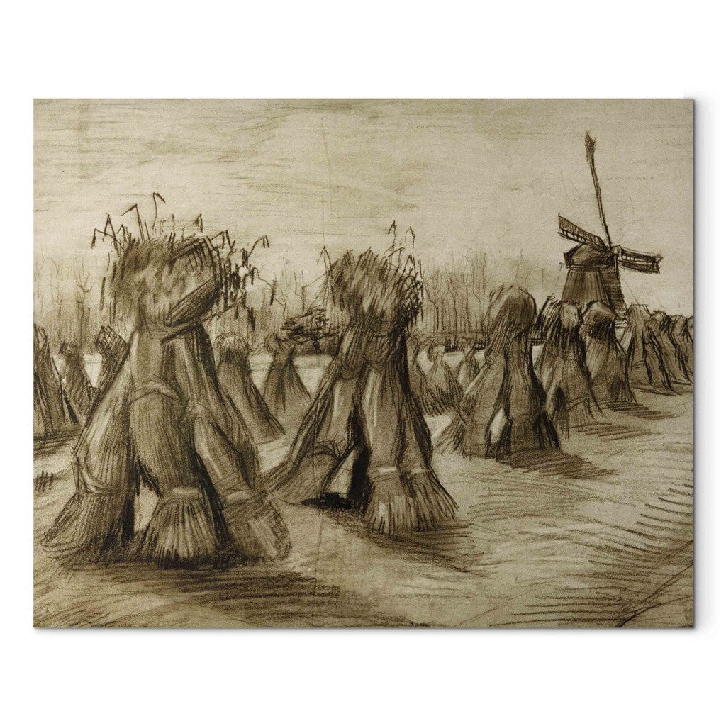Gleznas reprodukcija - Vincent van Gogh - Wheat Field with Sheaves and a Windmill