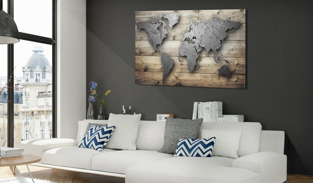 Korķa tāfele "Silver World [Cork Map]" ir produkts, kas ir radīts cilvēkiem, kuri meklē oriģinālus sienas dekorus. Pateicoties ekoloģiskajam materiālam un interesantajam dizainam “x”, parasts korķa ziņojumu dēlis kļūst par stilīgu dekoru, ko varat izmantot dažādos veidos. Piespraudiet savas piezīmes un fotogrāfijas un atzīmējiet apmeklētās vietas kartē. Dekoratīva korķa tāfele "Silver World [Cork Map]" ir daudz vieglāka nekā tradicionālie sienas dekori. Pateicoties tam, dekoratīvo korķa tāfeli iespējams piekārt jebkurā vietā Jūsu dzīvoklī vai birojā. Korķa tāfele ir apvilkta ar apdrukātu audumu. Apdrukai ir košas krāsas un tajā redzamas pat sīkākās detaļas. Piestipriniet savas piezīmes un veidojiet savu individuālo dizainu pie sienas! Korķa pasaules karte ir lieliska dāvana ceļotājiem!